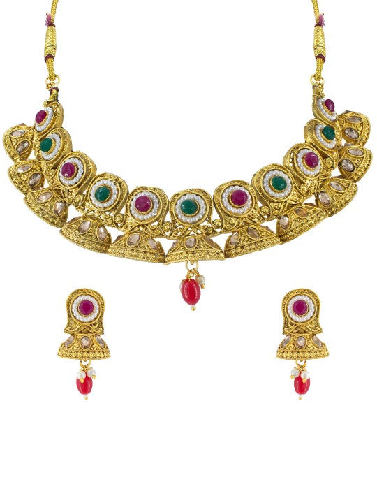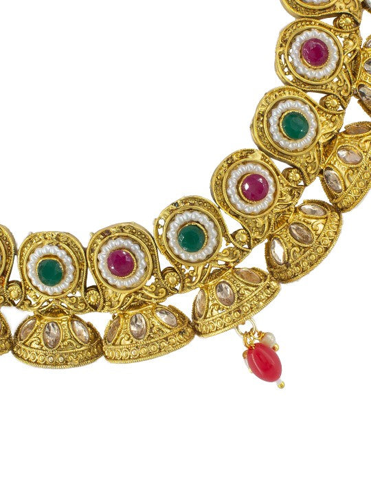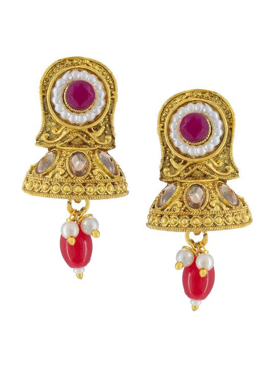 Gold-Plated Jhumki Design Stone-Studded Jewellery Set