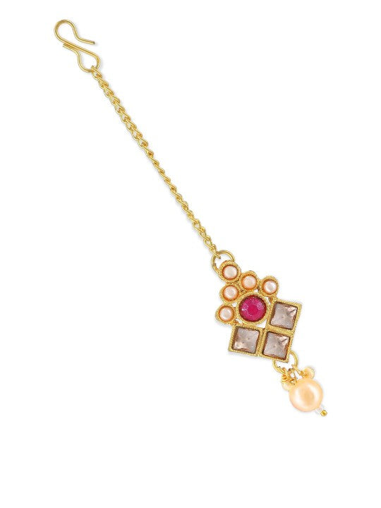 Gold-Plated Kundan Studded & Beaded Jewellery Set With Maangtika