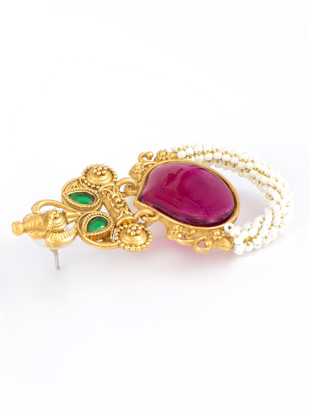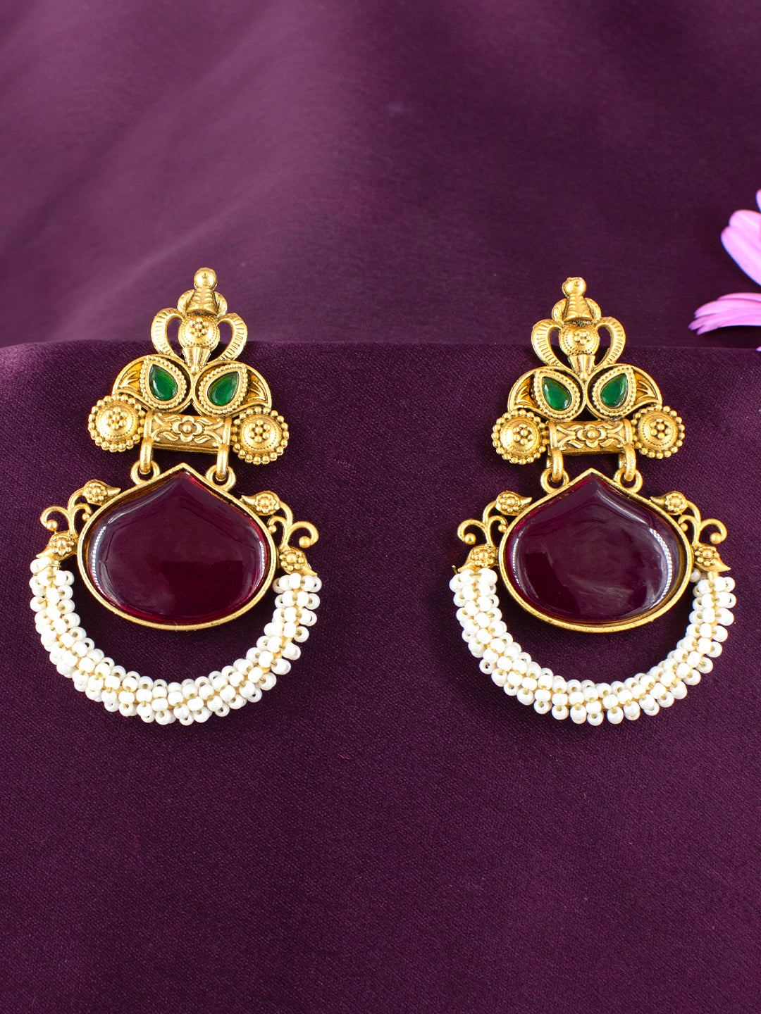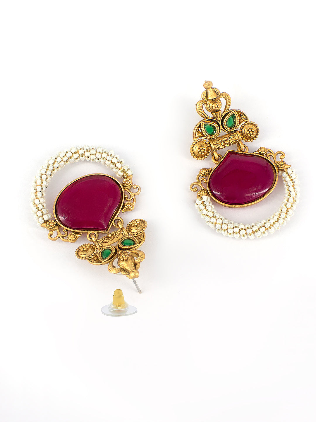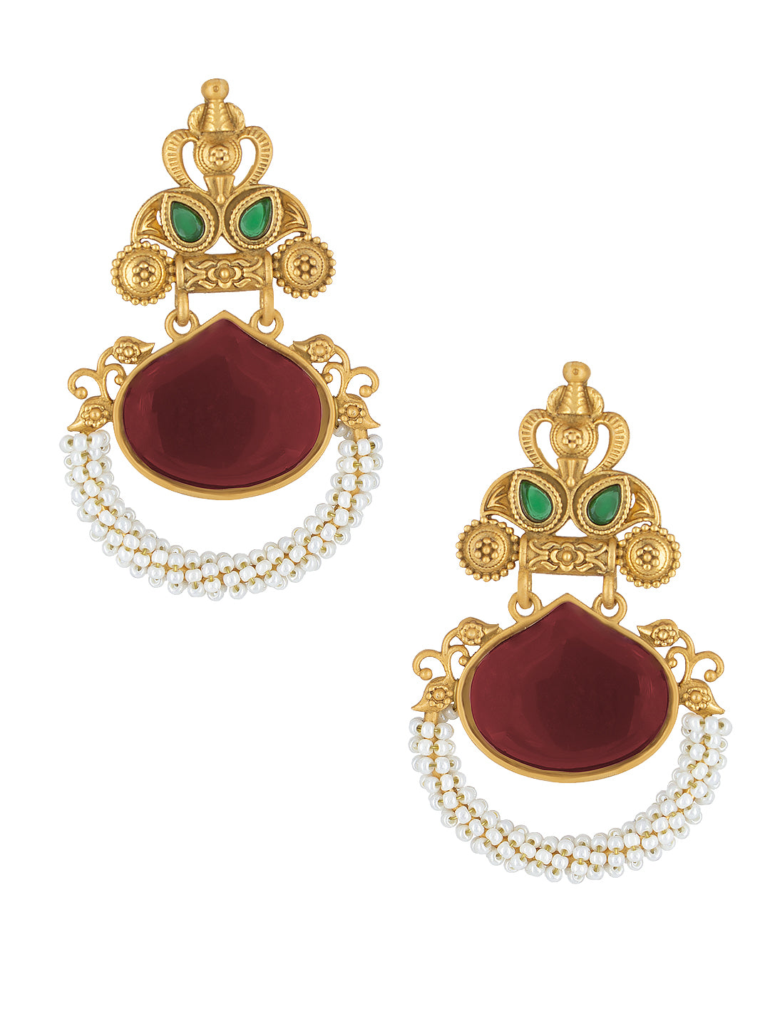 Gold-toned, red and green contemporary drop, gold-plated, has artificial stones and beads