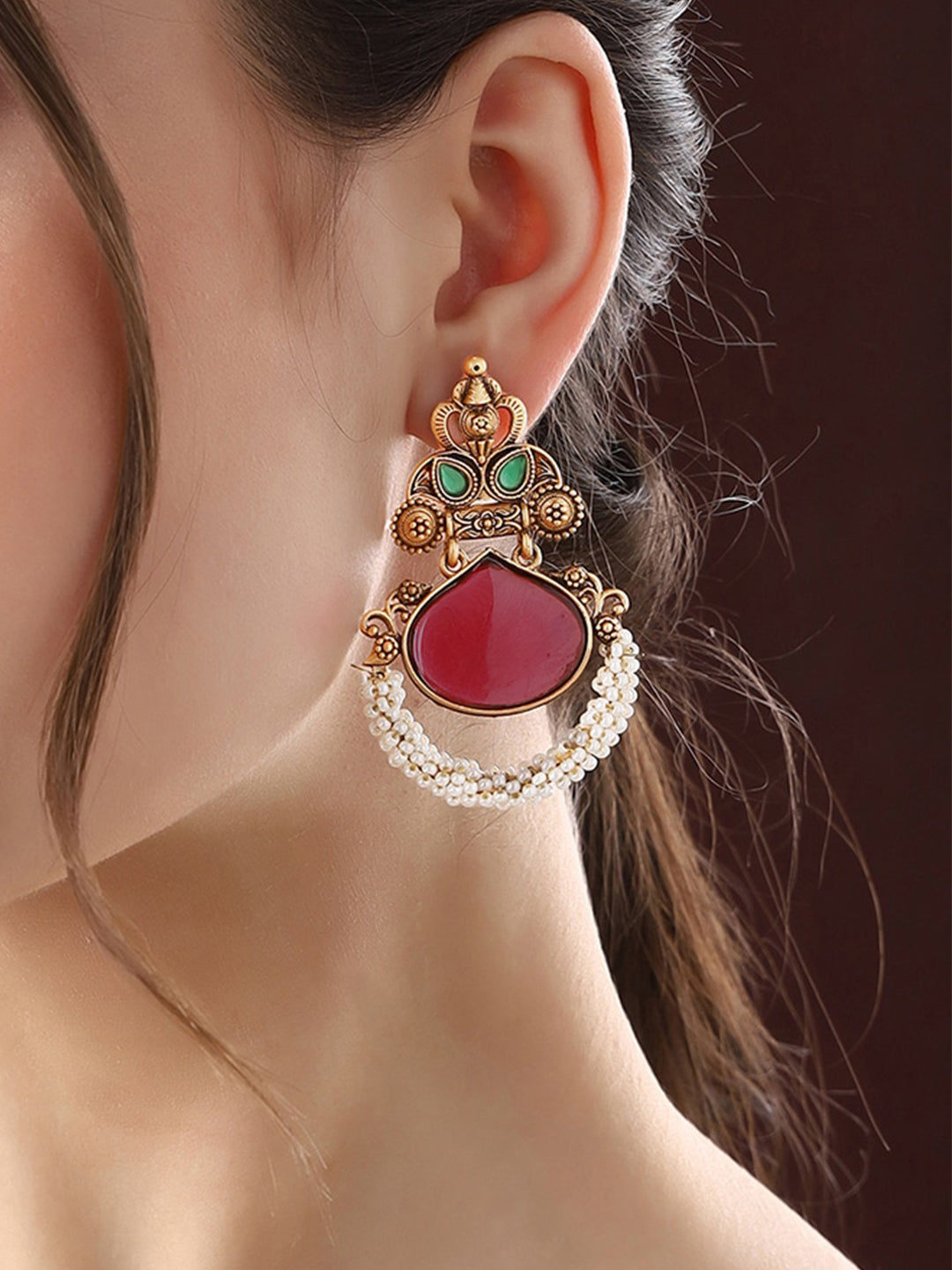 Gold-Plated Kundan Studded Contemporary Drop Earrings