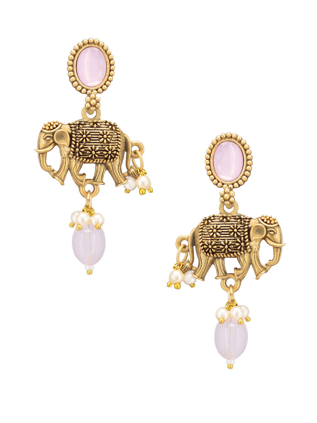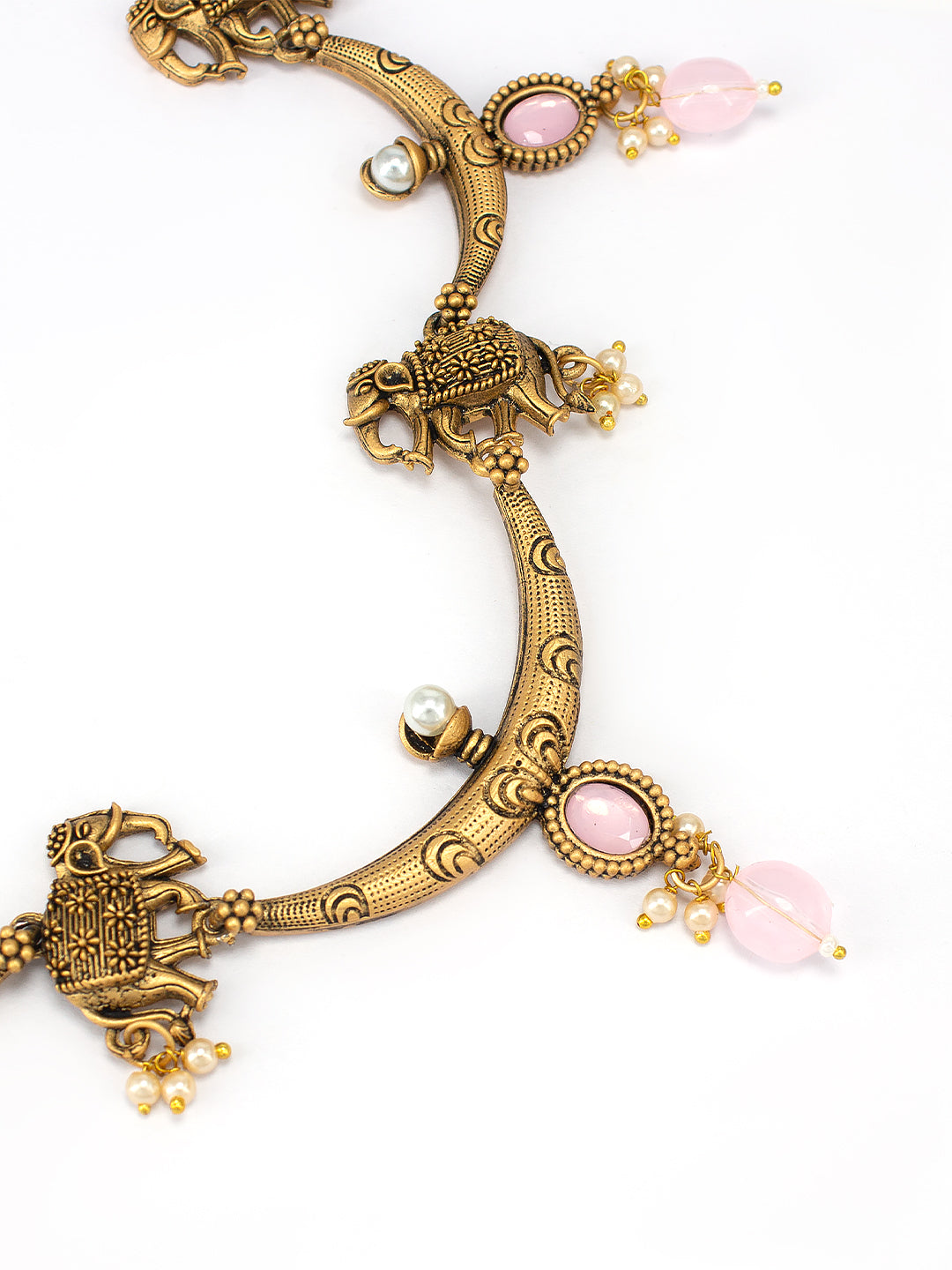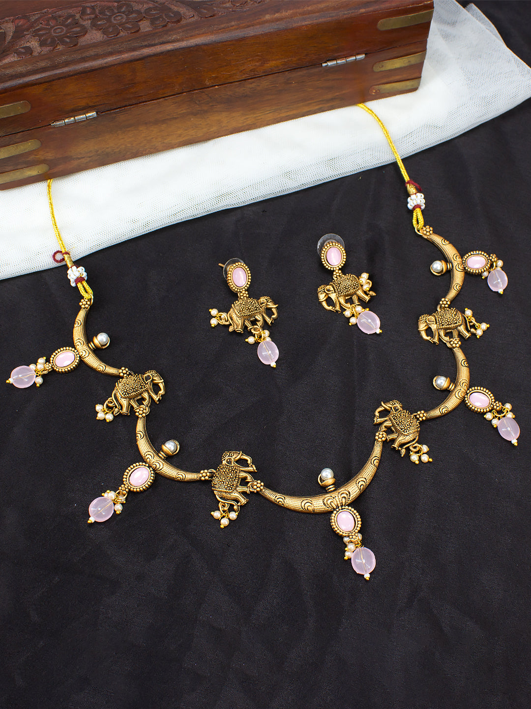 Gold Plated Kundan Studded Elephant Shaped Jewellery Set