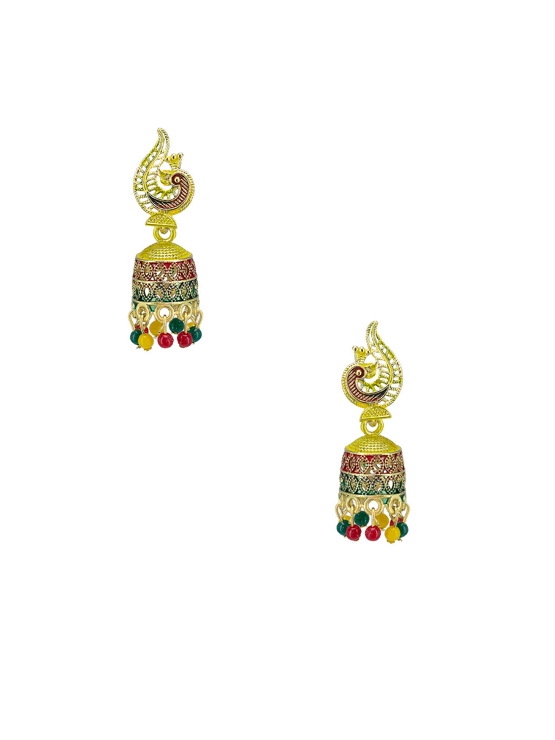 Gold Plated Peacock Multi Color Artificial Beaded Jhumki Earrings