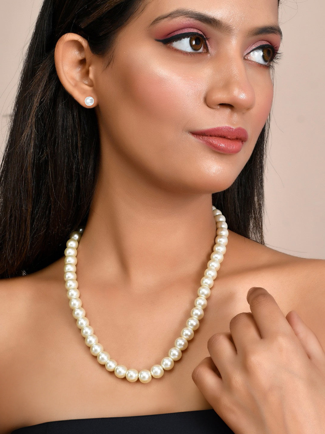 Gold Plated Pearl Beaded Moti Mala Trendy Necklace & Earrings
