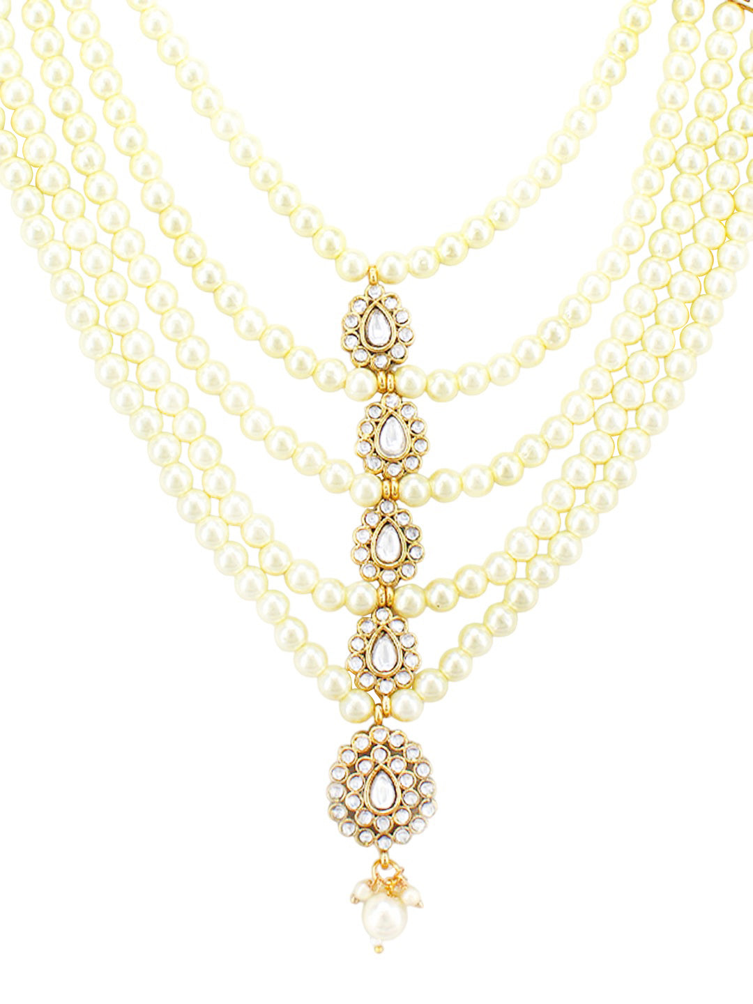 Gold-Plated Pearl-Studded & Kundan-Beaded Multi Layered Jewellery Set With Maangtika