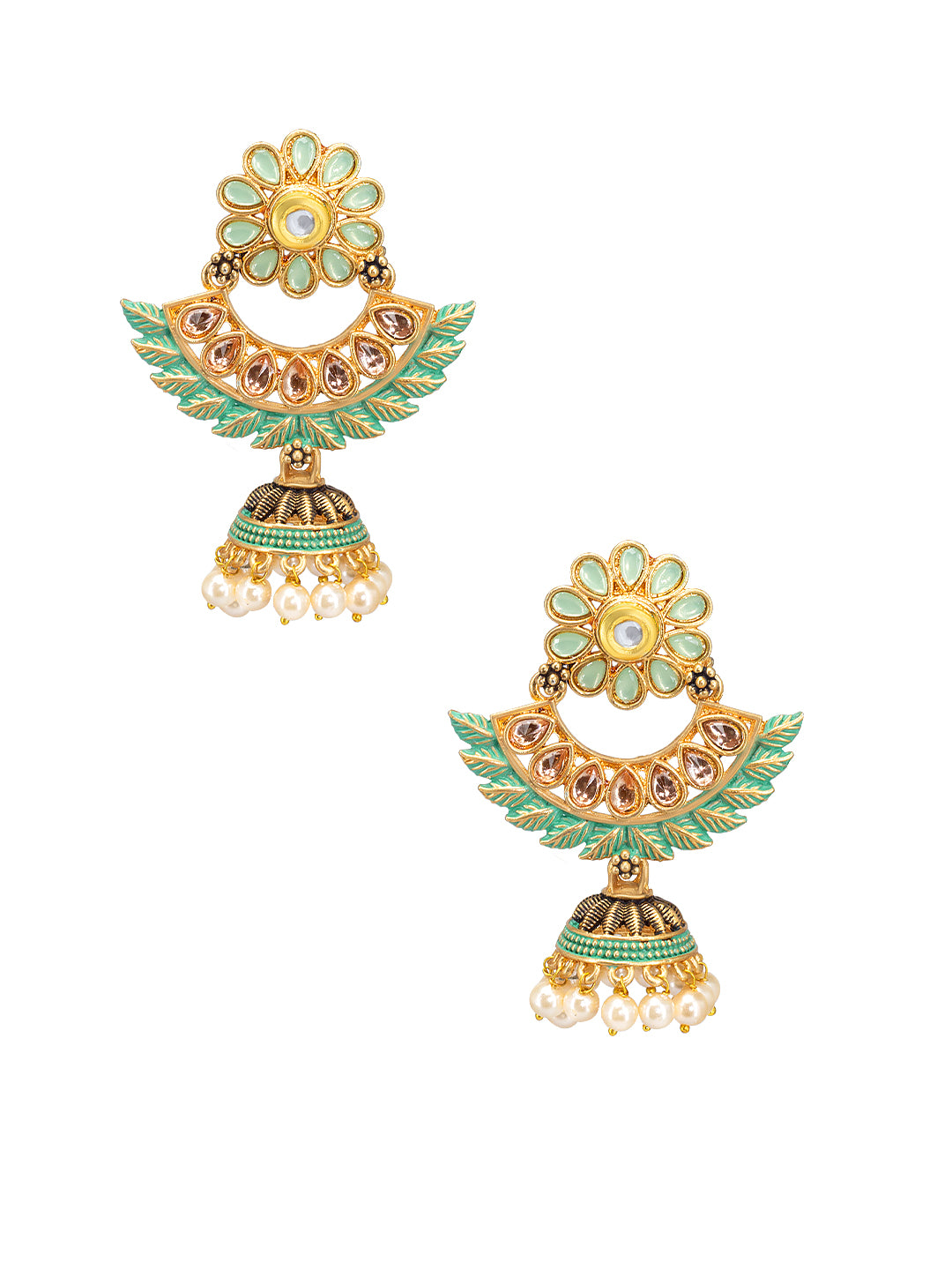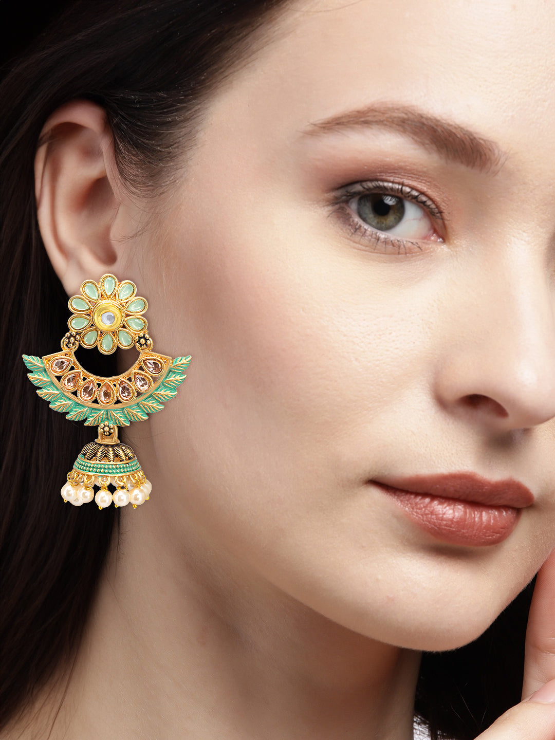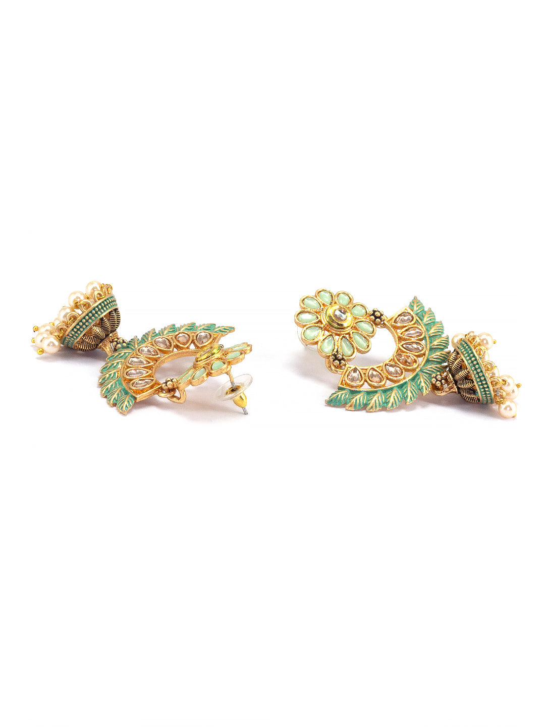 Gold-Plated Green Oval AD-Studded Pendant Set