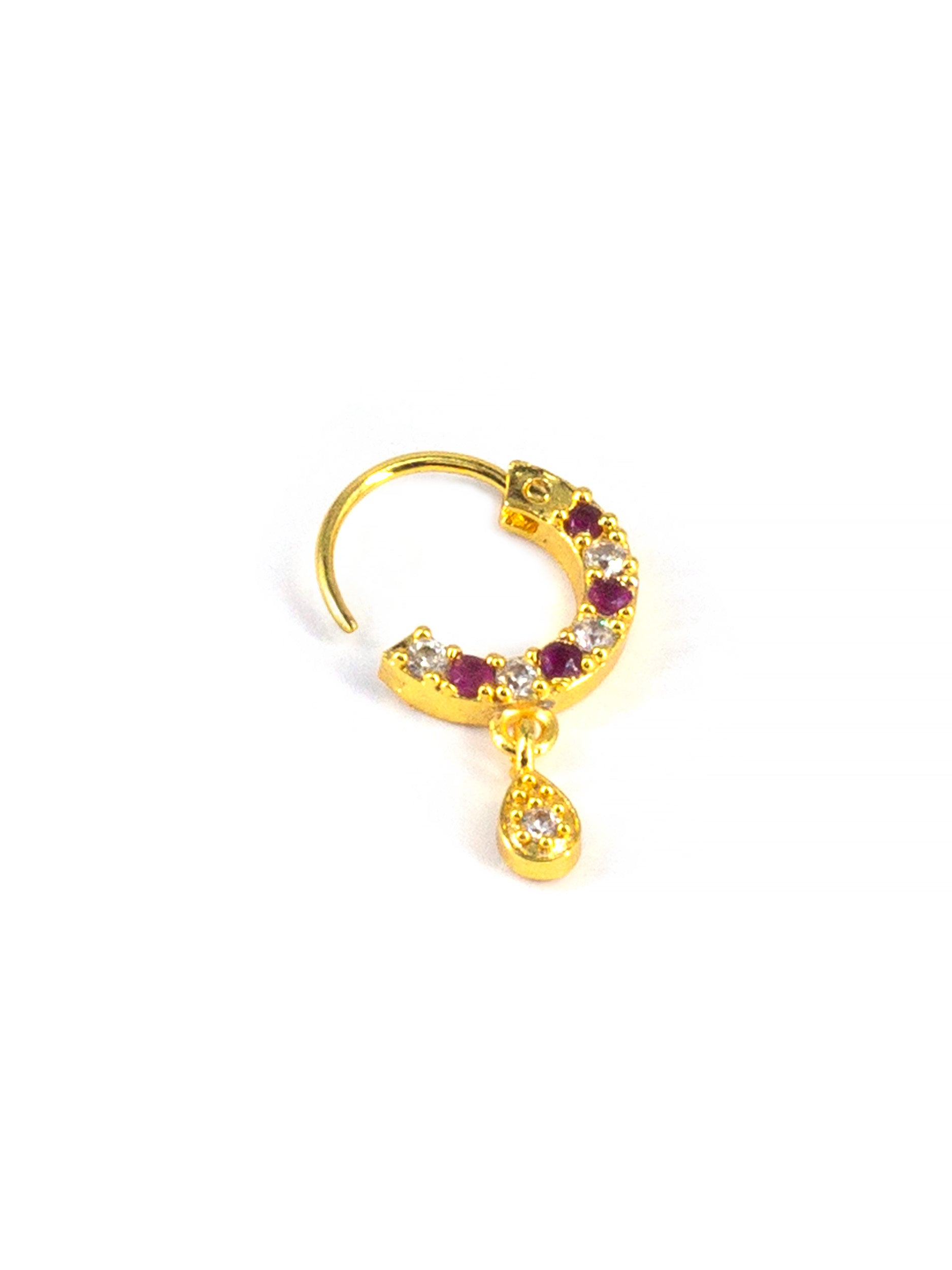 Gold Plated Red AD Small Nose Ring for Women