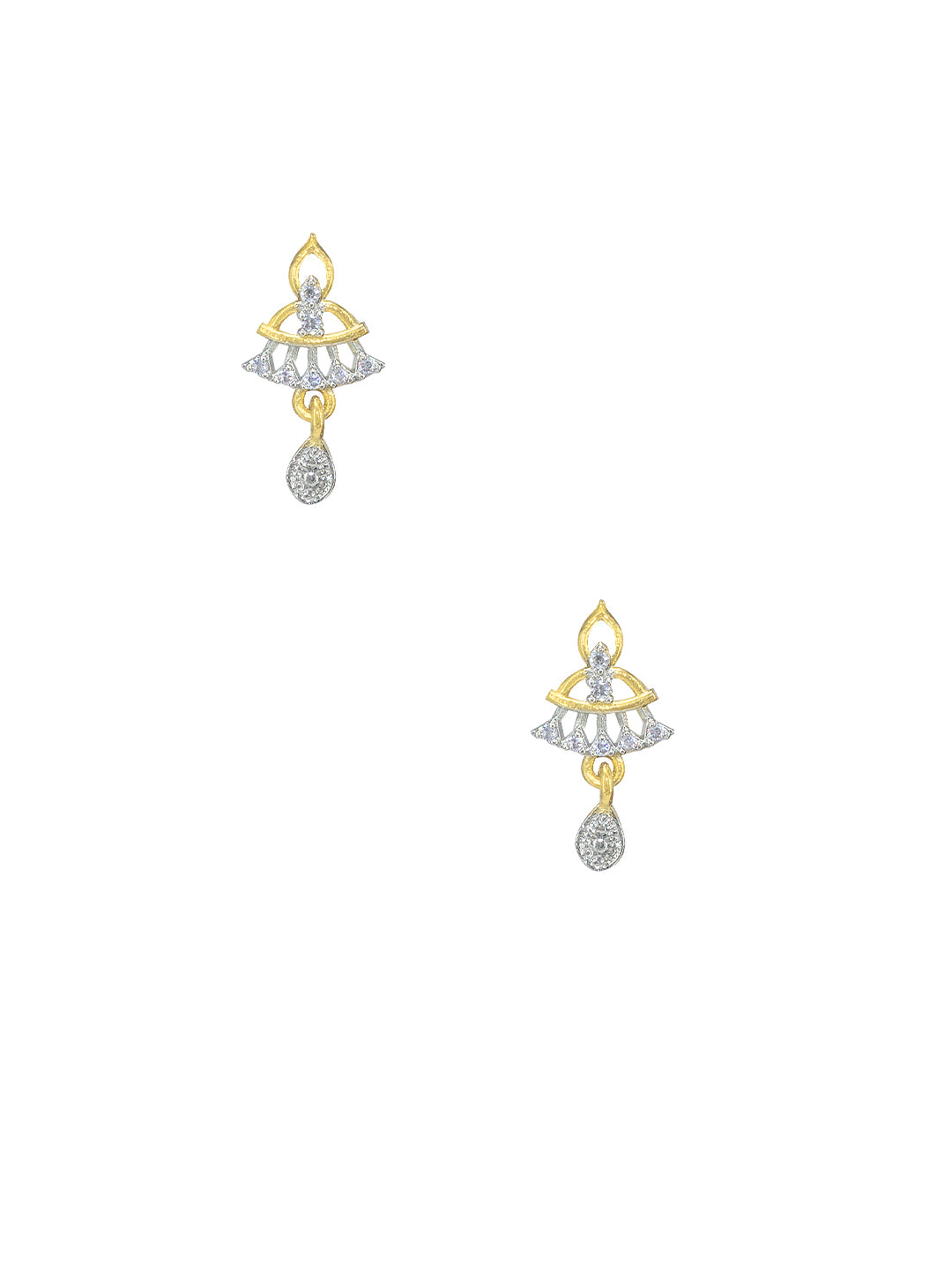 This mangalsutra set consist of a mangalsutra necklace and a pair of matching earrings. The necklace is gold plated, has AD studded and black beaded chain details. Earrings are secured with post and back closure.