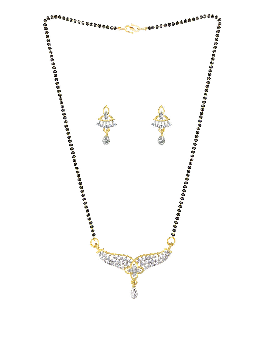 Gold Plated American Diamond & Black Beaded Trendy Mangalsutra With Earrings