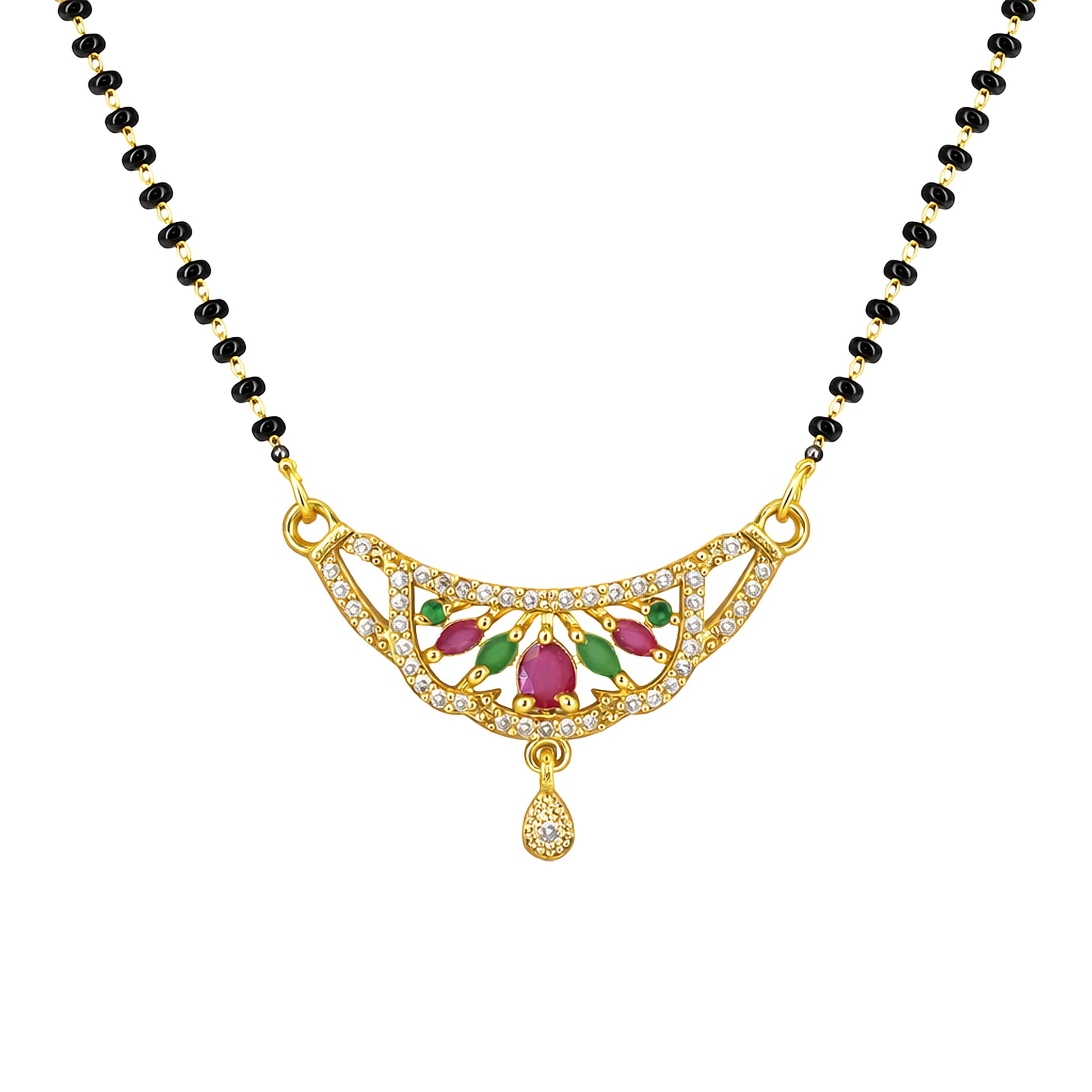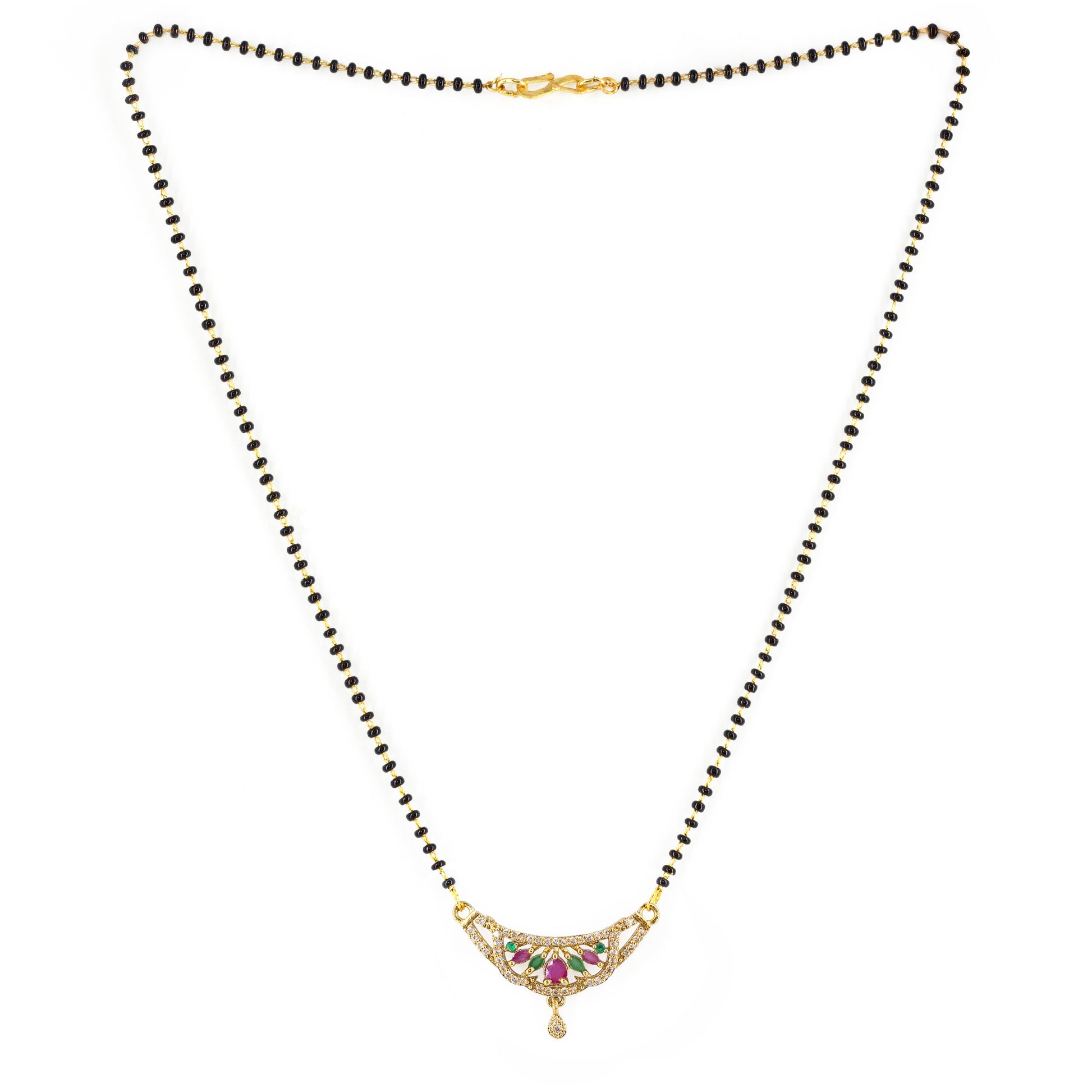 Gold Plated Red & Green AD Mangalsutra For Women Secured with S-Hook Closure.