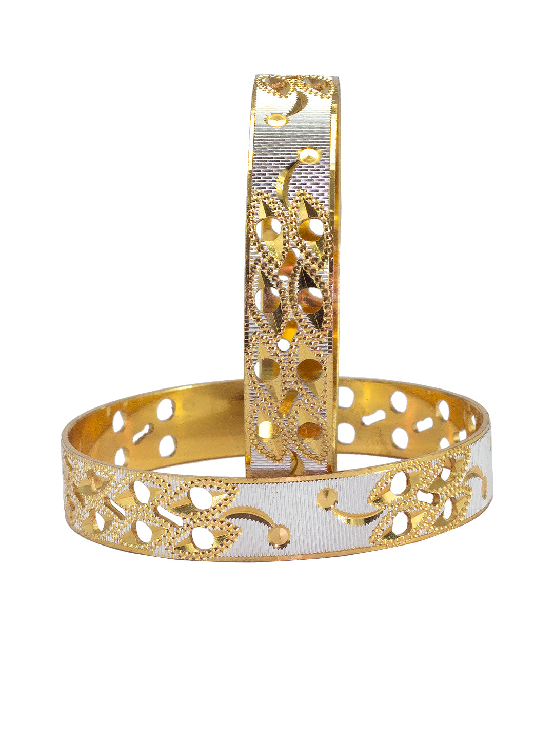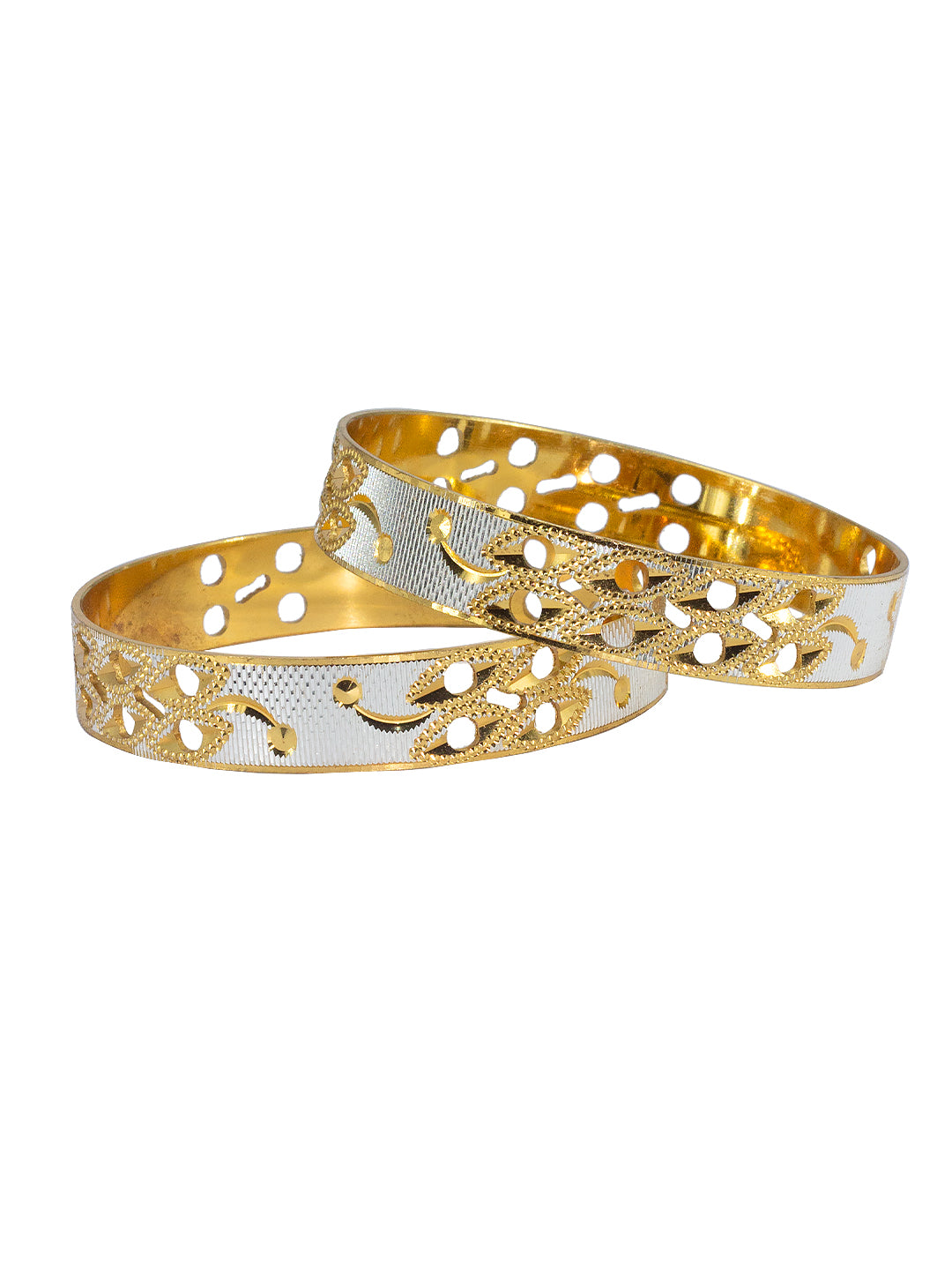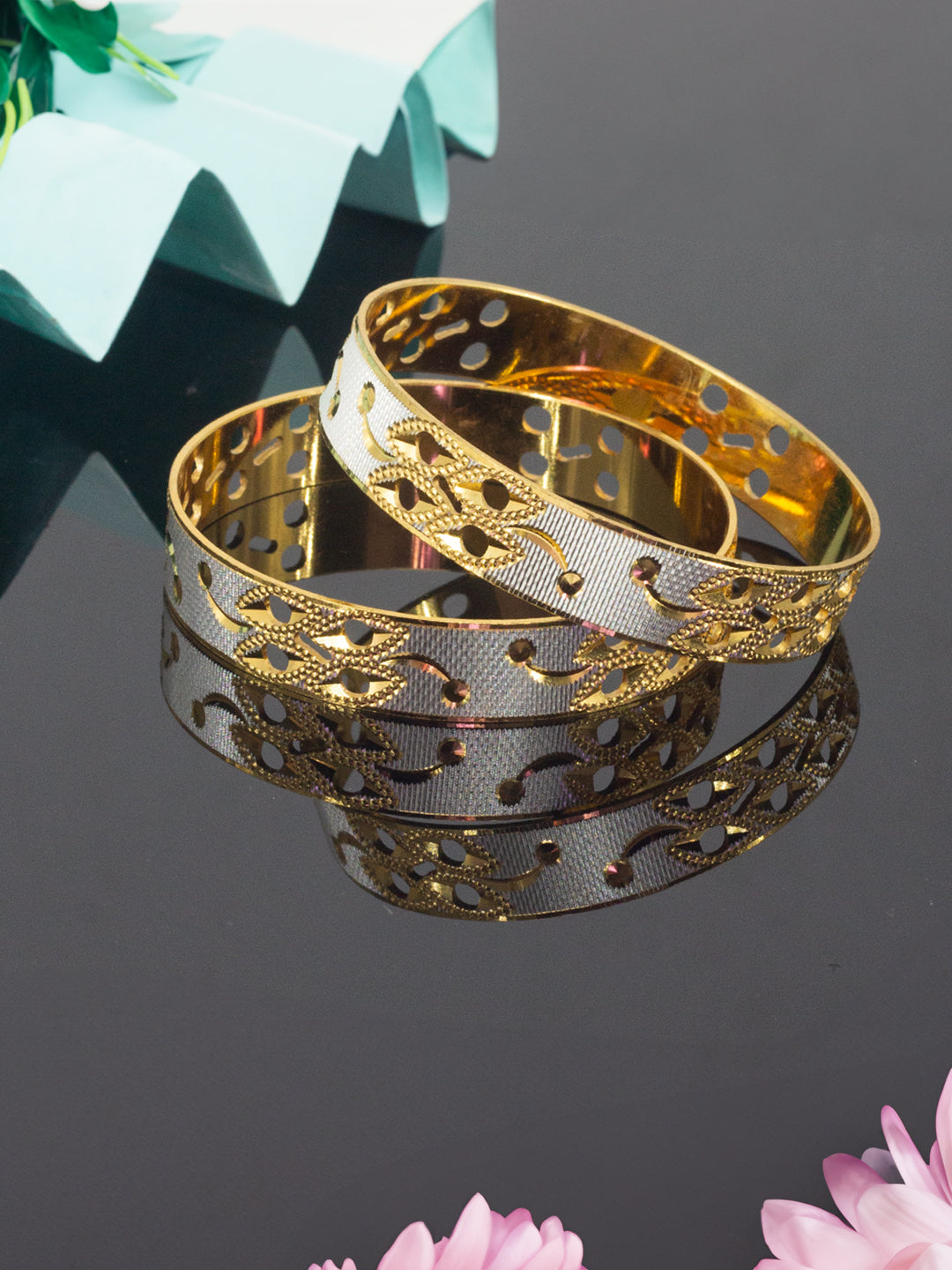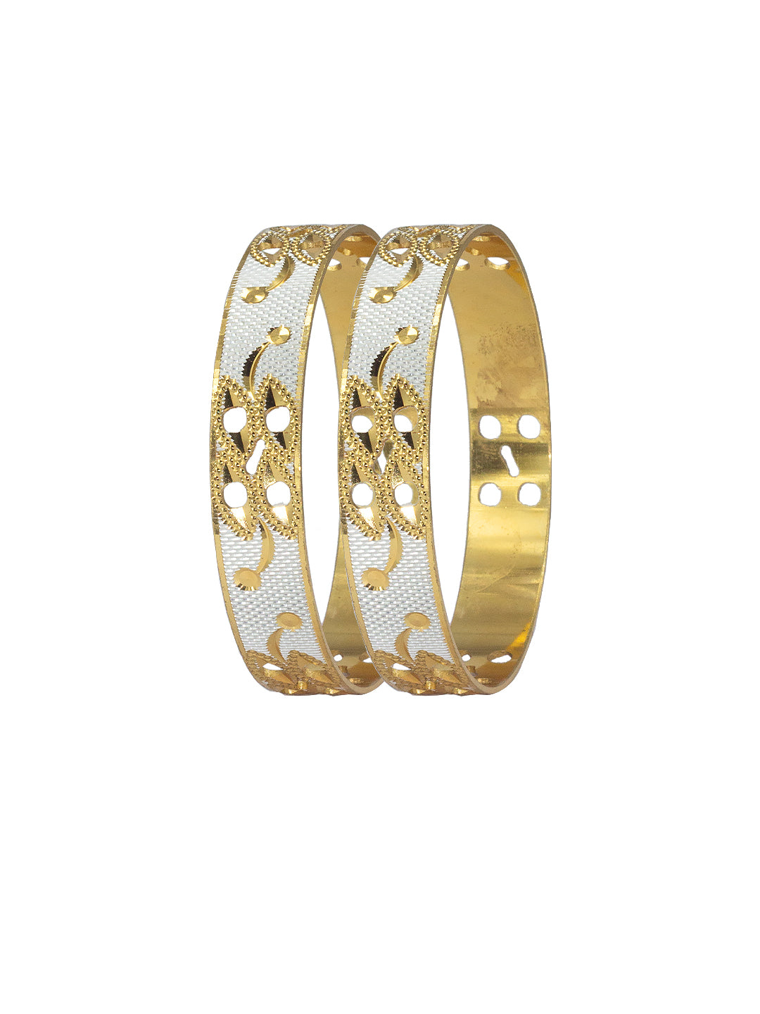 This bangle pair is gold plated, has cutwork details and secured with slip on closure.
