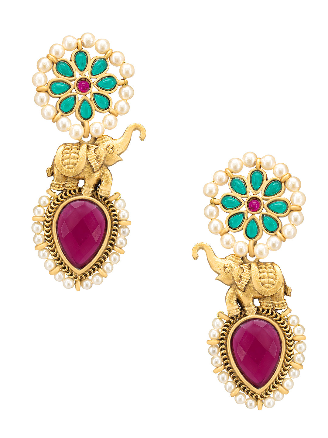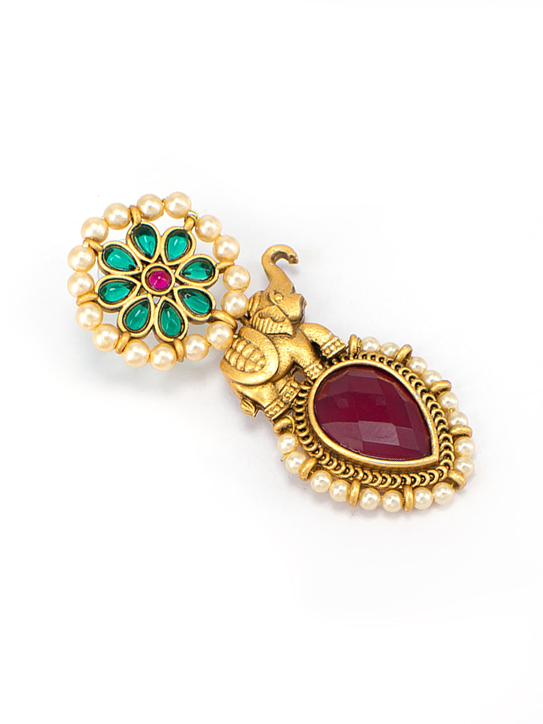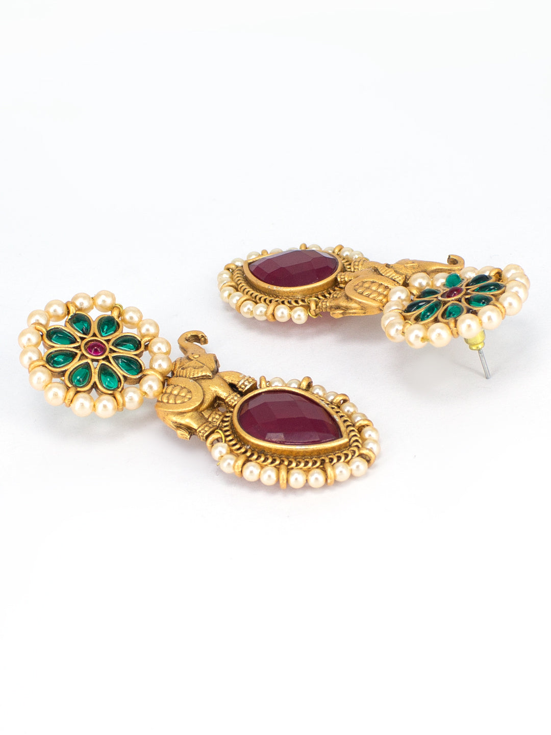 Gold-toned,red and green contemporary drop, gold-plated, has artificial stones and beads