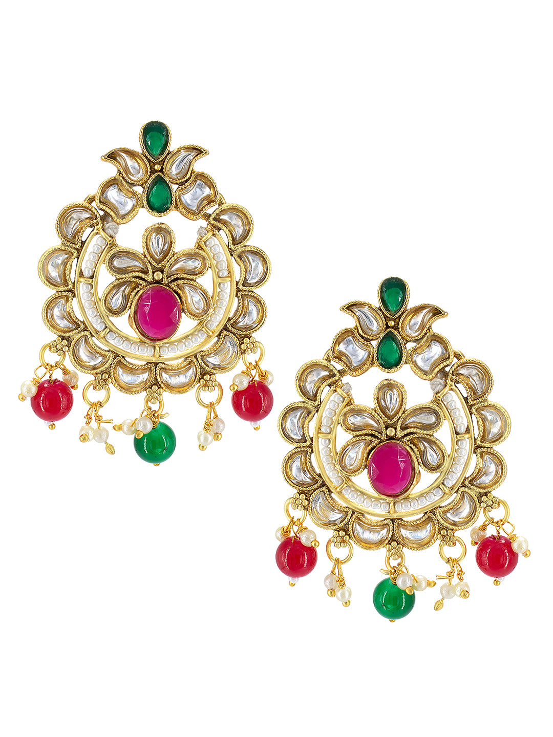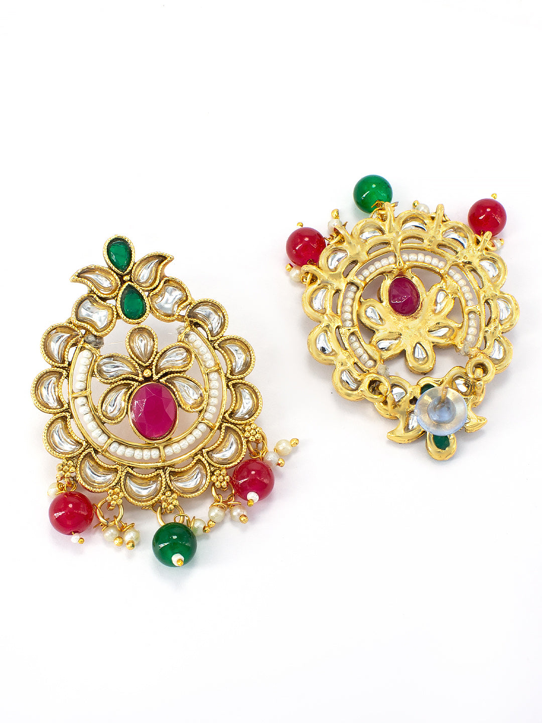 Gold Plated Stones Studded & Beaded Jewellery Set
