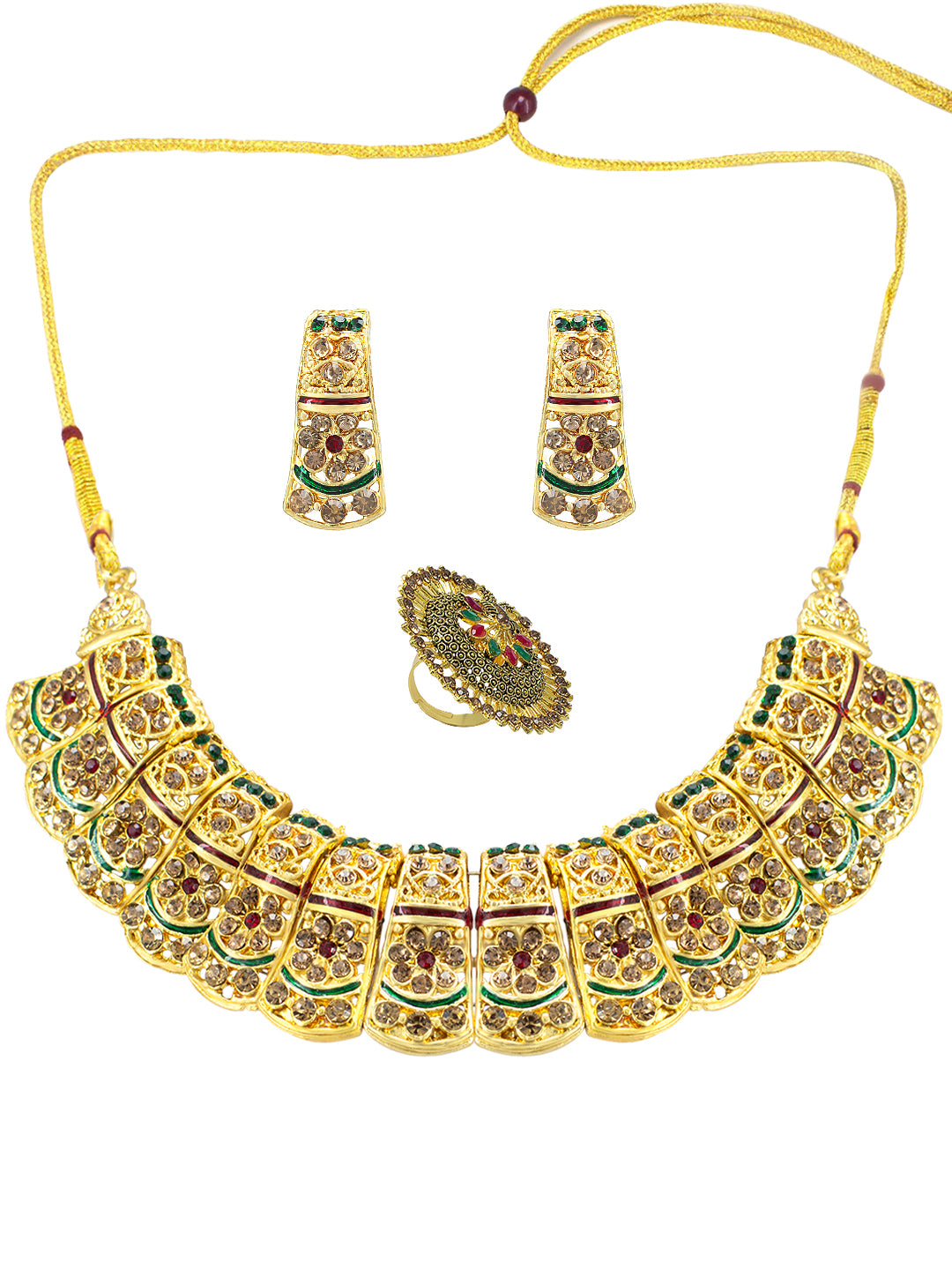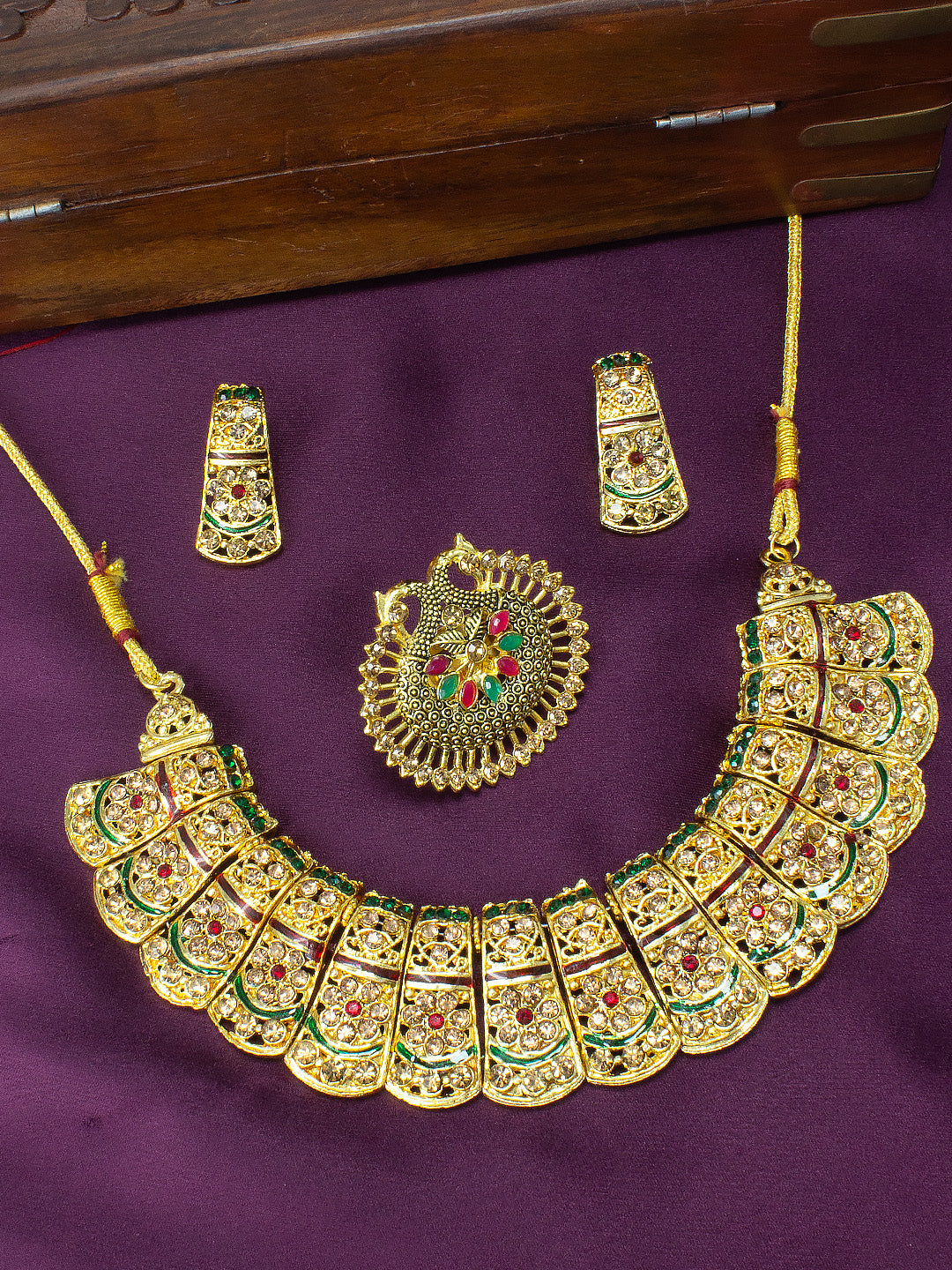 Gold-Plated Stones-Studded Rajwadi Jewellery Set