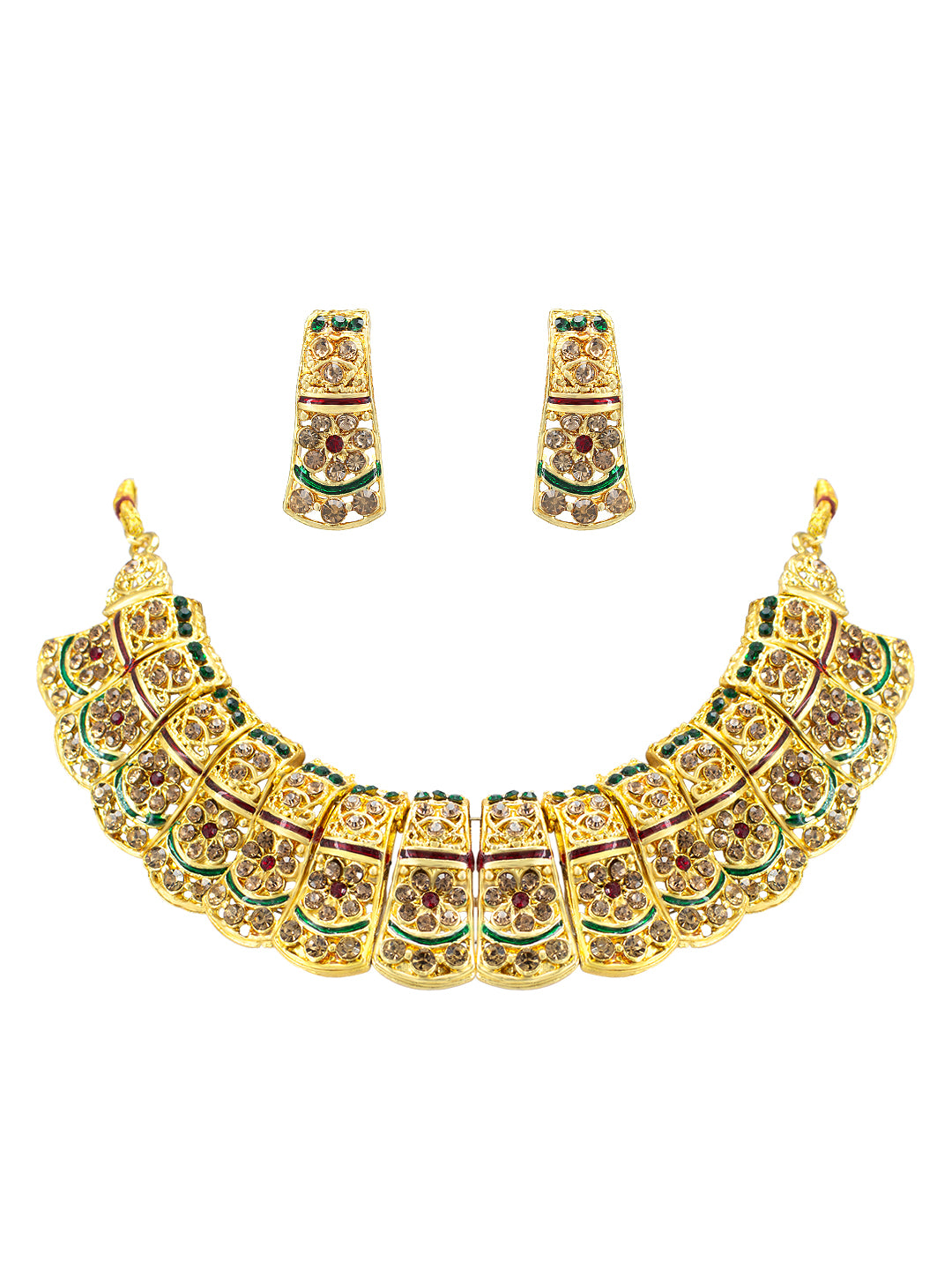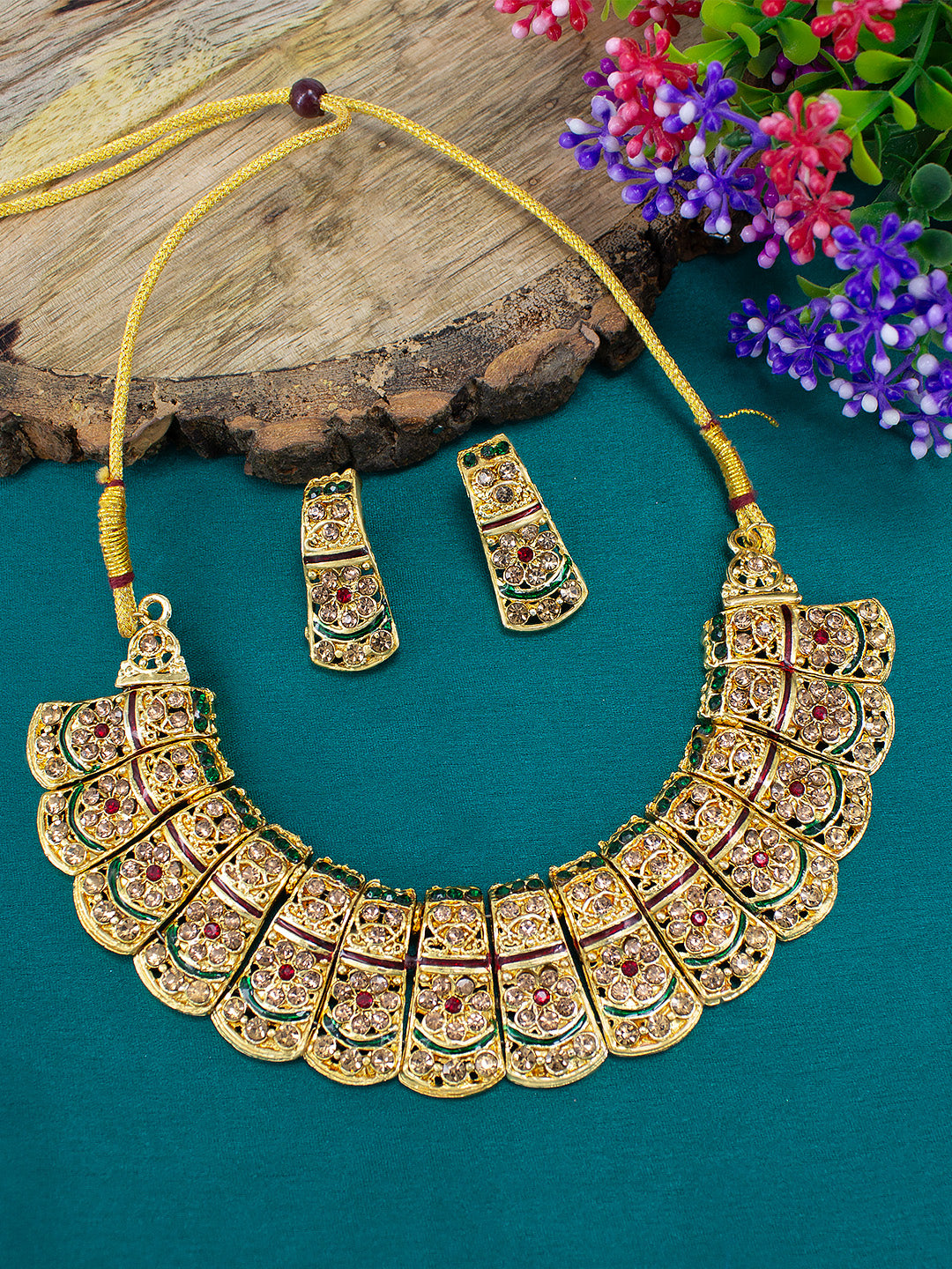 Gold-Plated Stones-Studded Rajwadi Jewellery Set