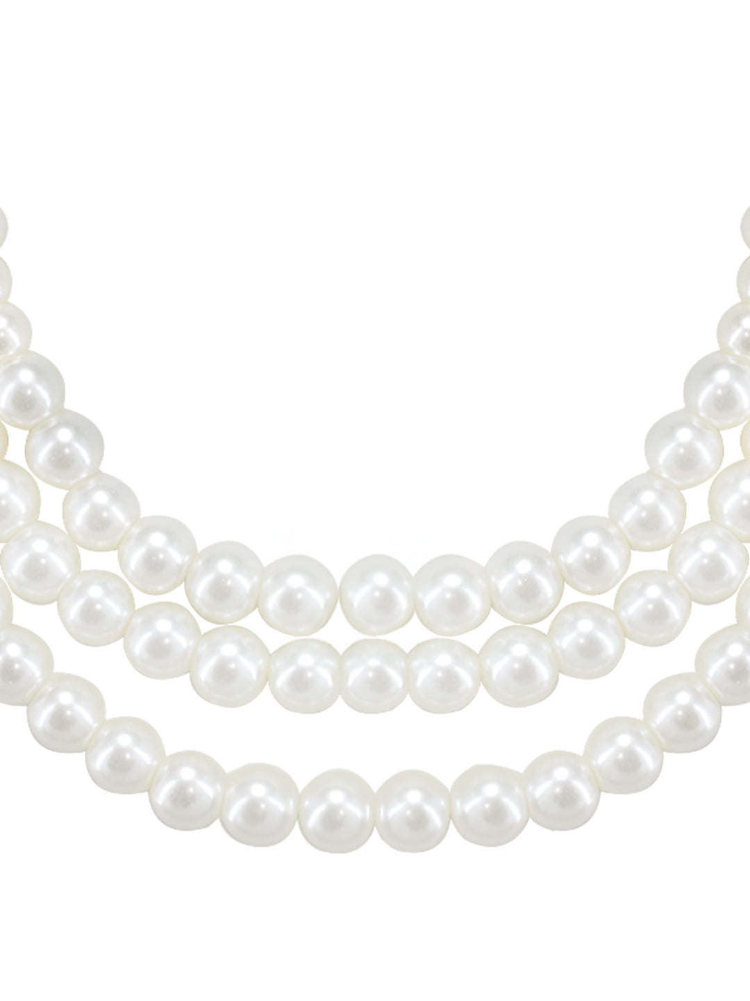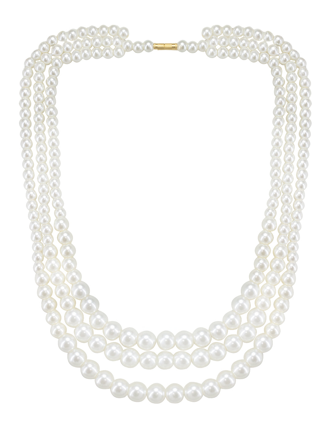 Gold Plated Three Layered Faux Pearl Beaded Trendy Moti Mala Necklace