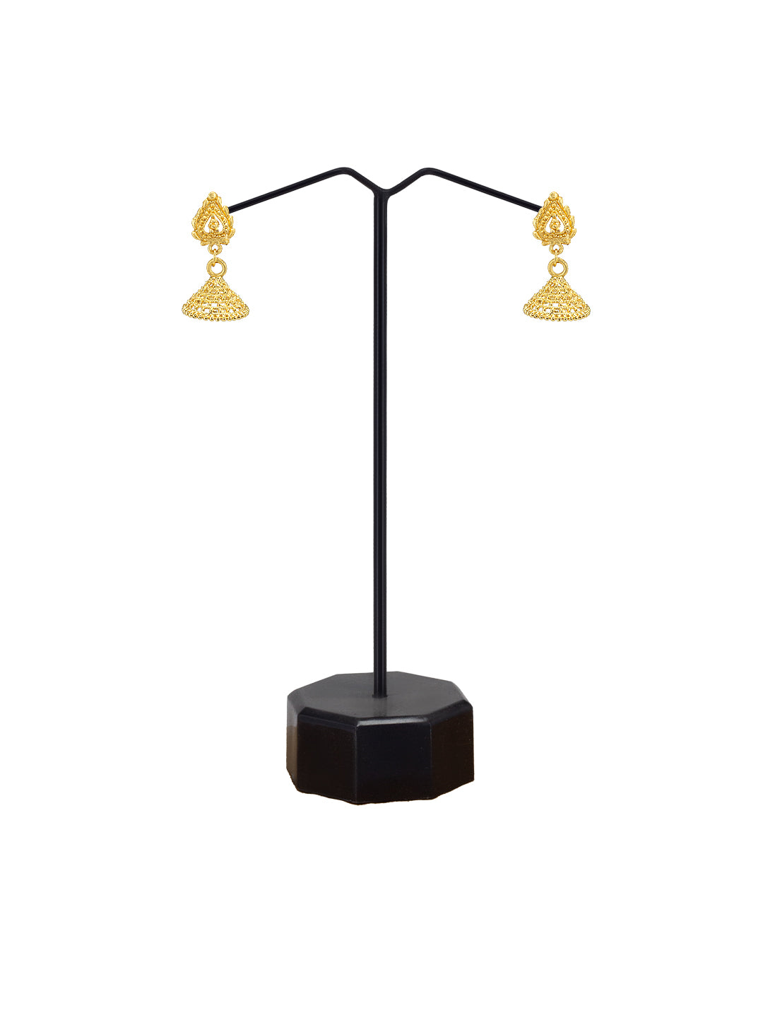 These earrings are gold plated, has circular design details and secured with post and back closure.