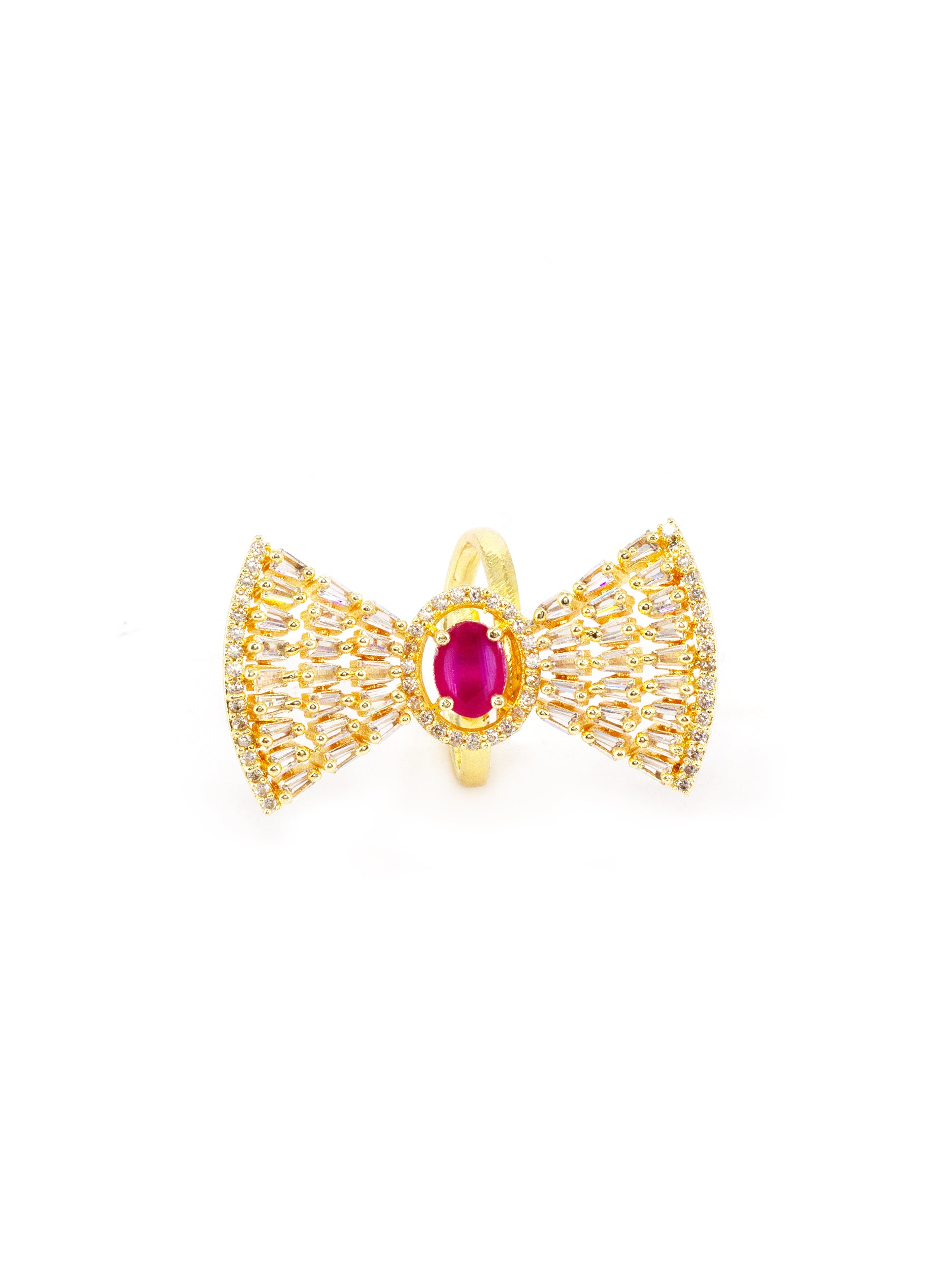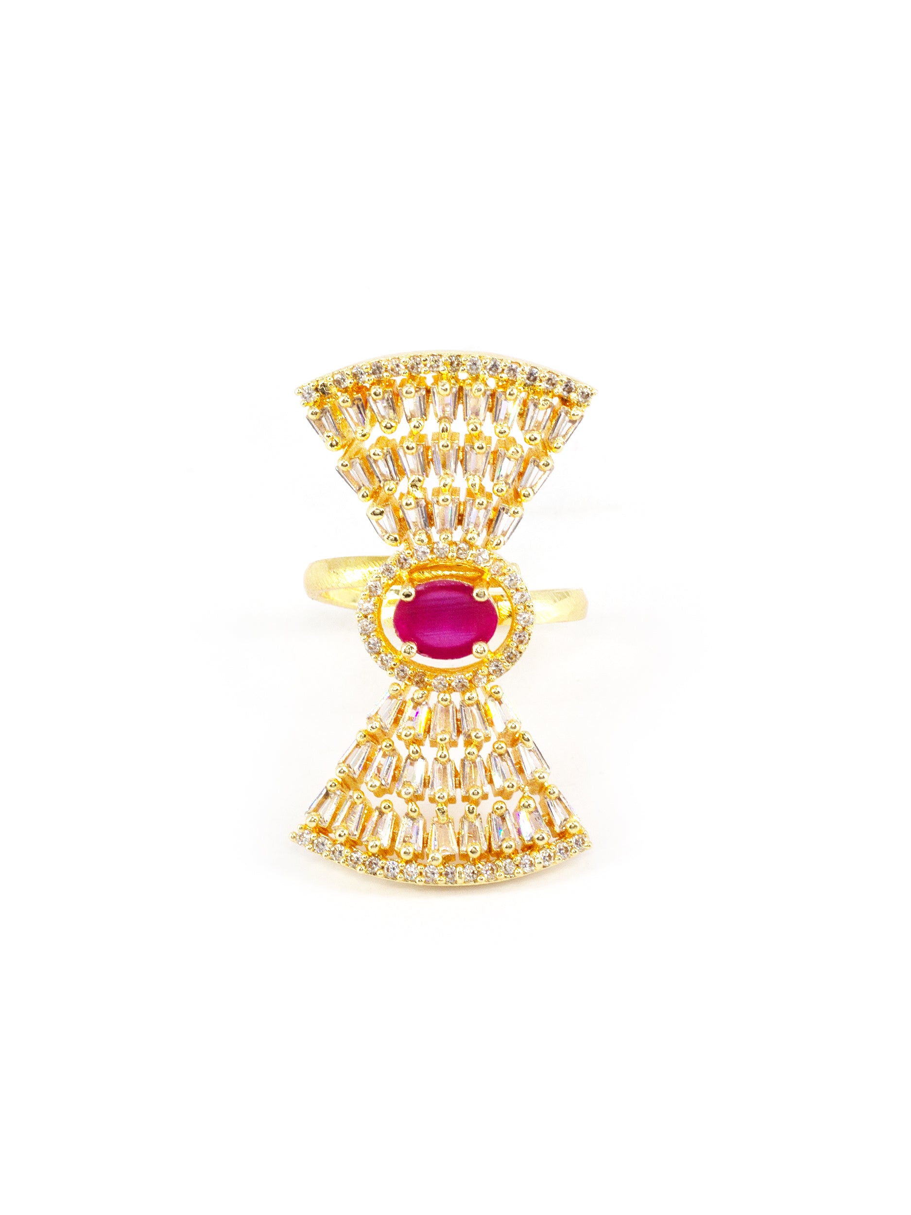 Gold Plated White & Red AD Ring for Women secured with Adjustable Closure.