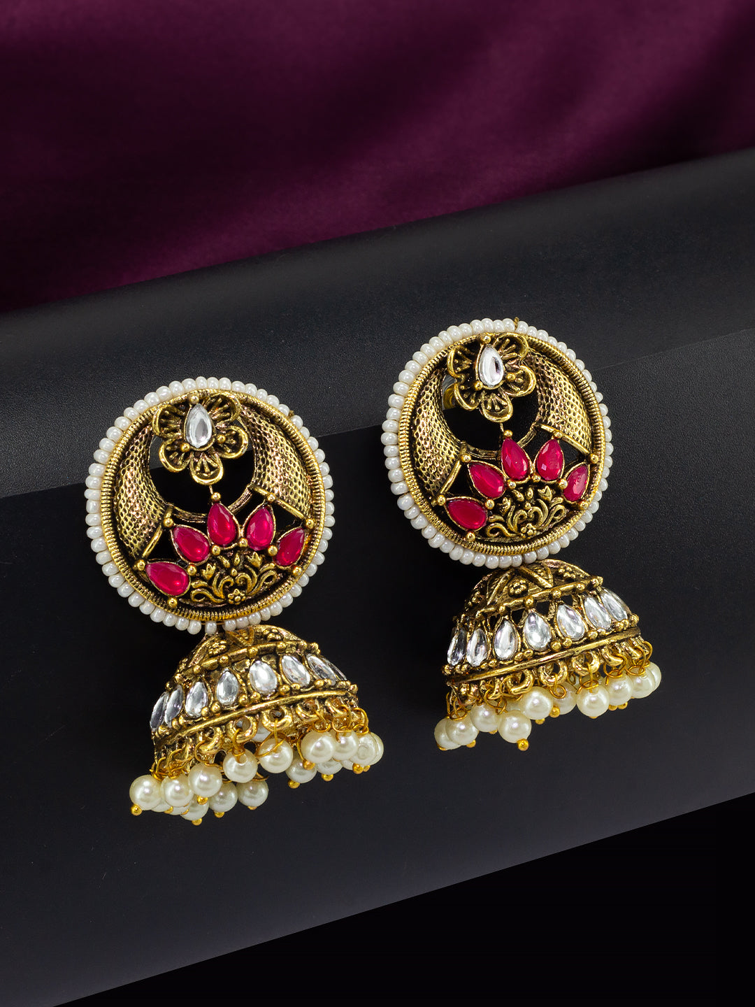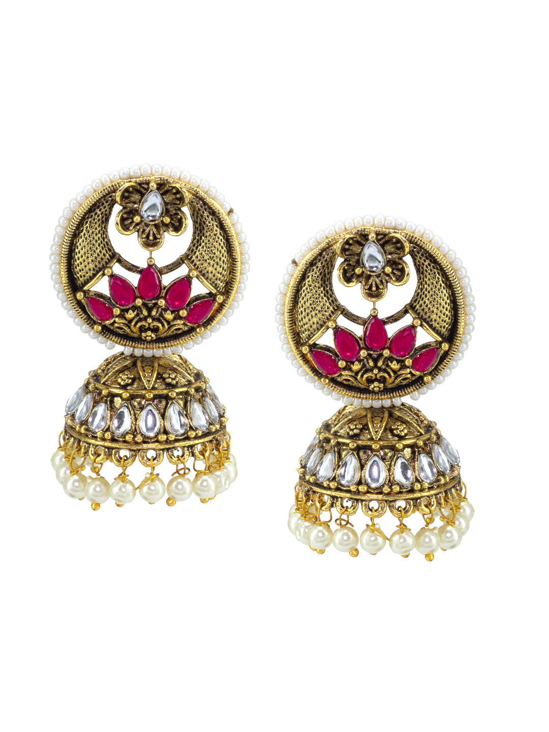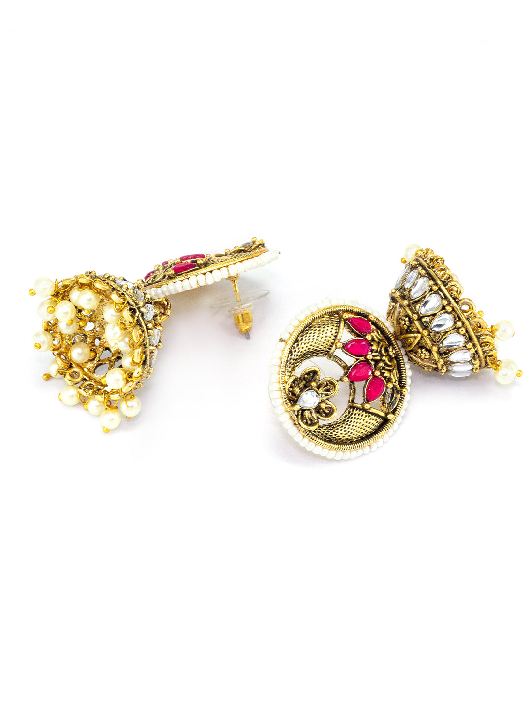 Gold-Toned Dome Shaped Kundan Studded Jhumkas