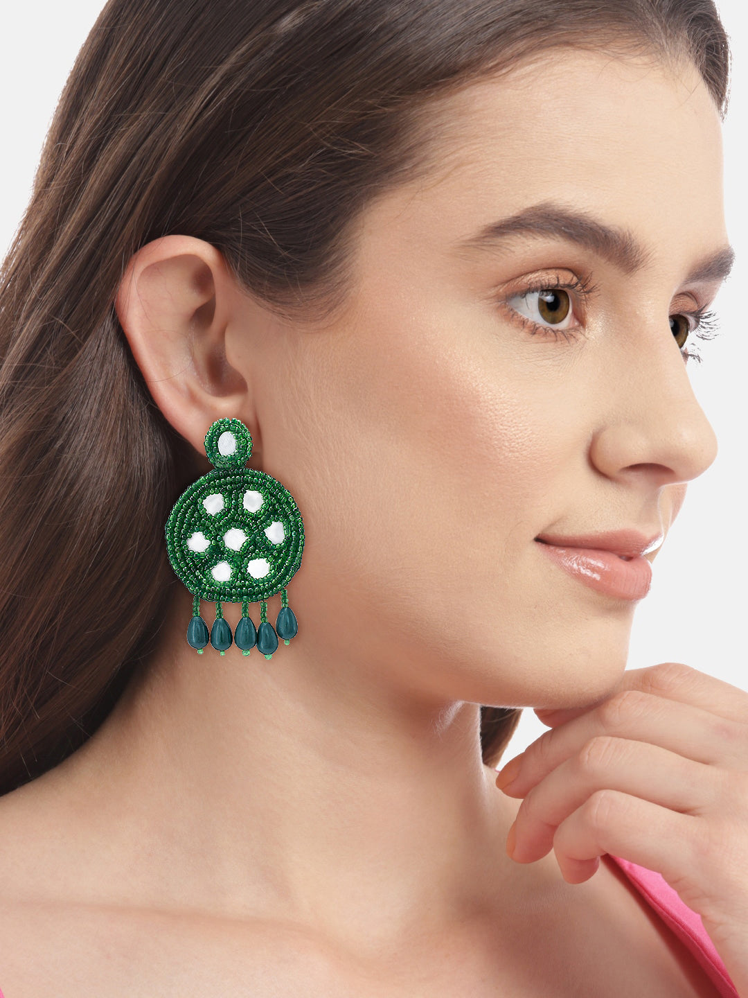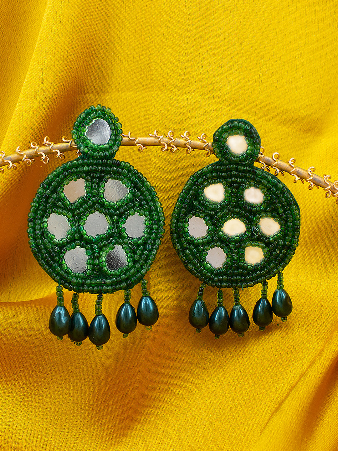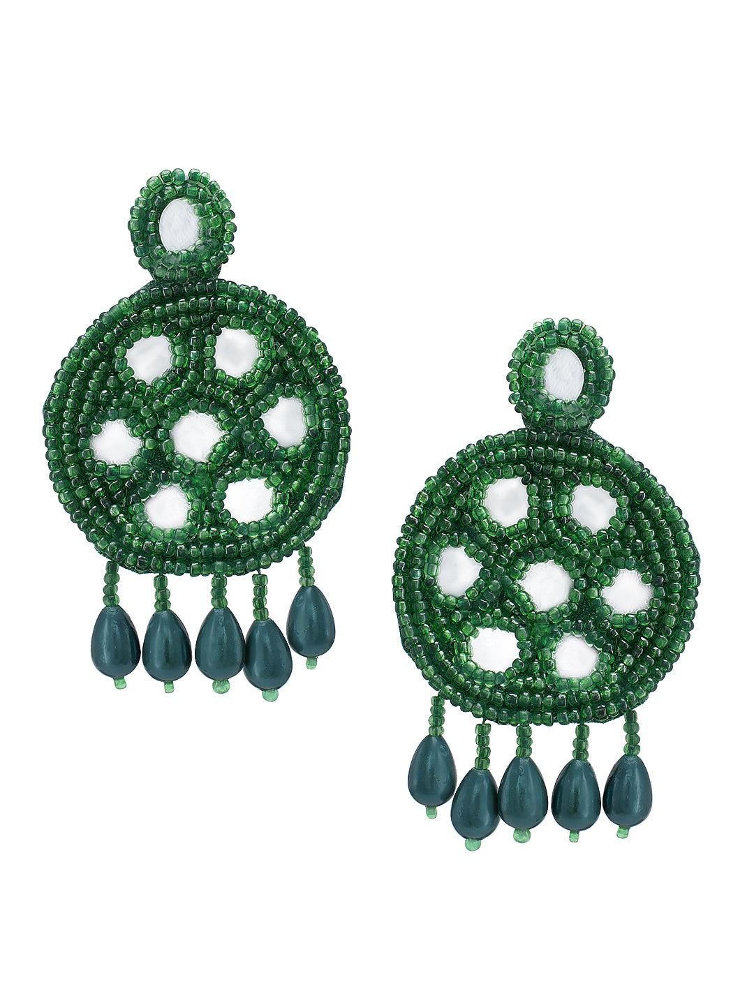 Green Beaded Quirky Drop Earrings