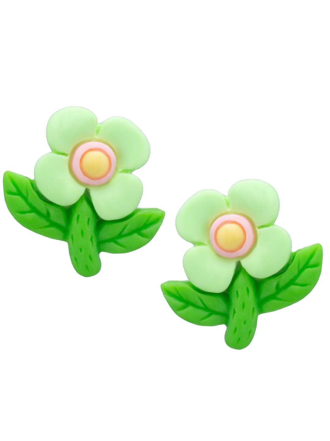 Silver-toned, green floral studs