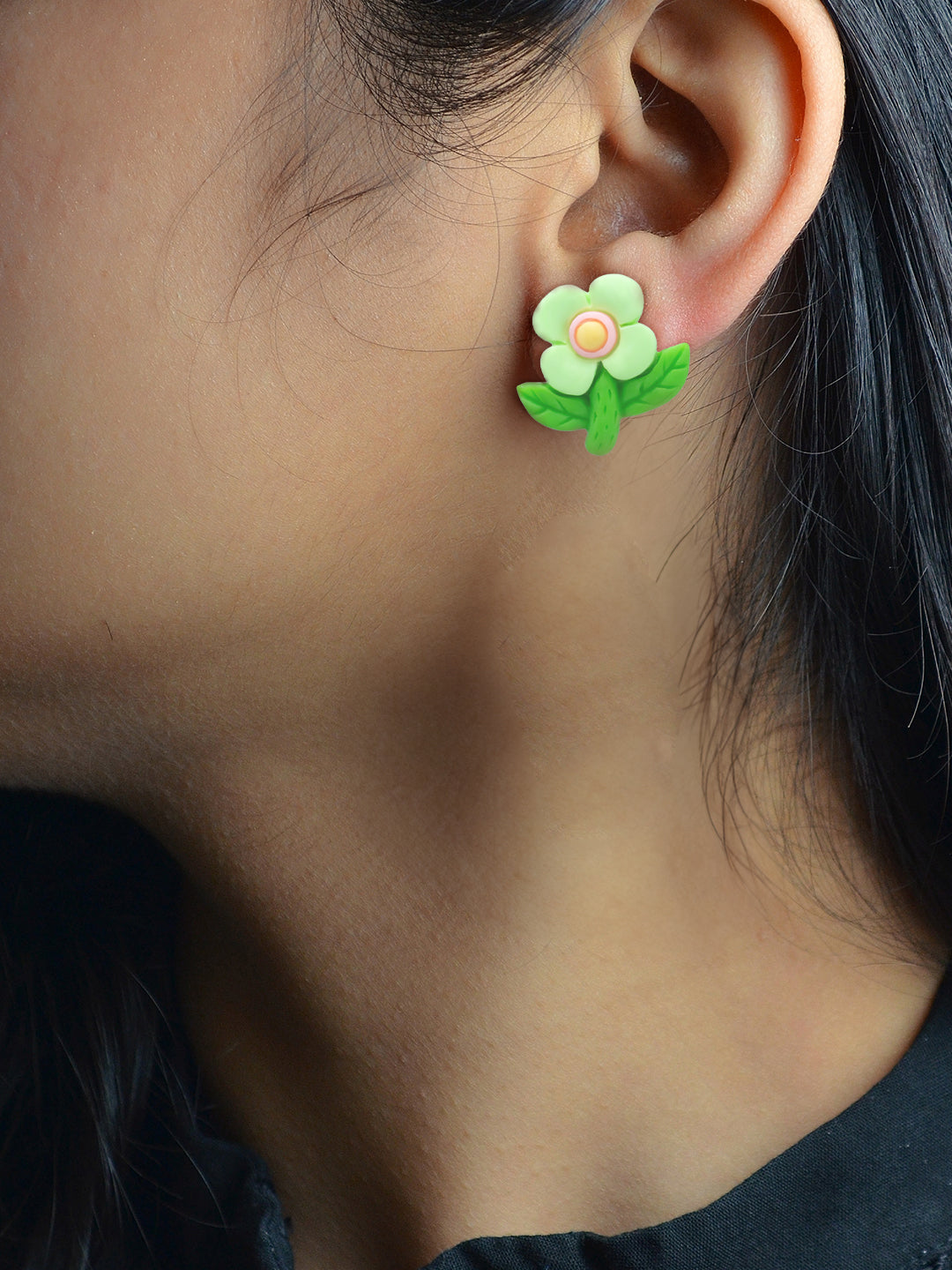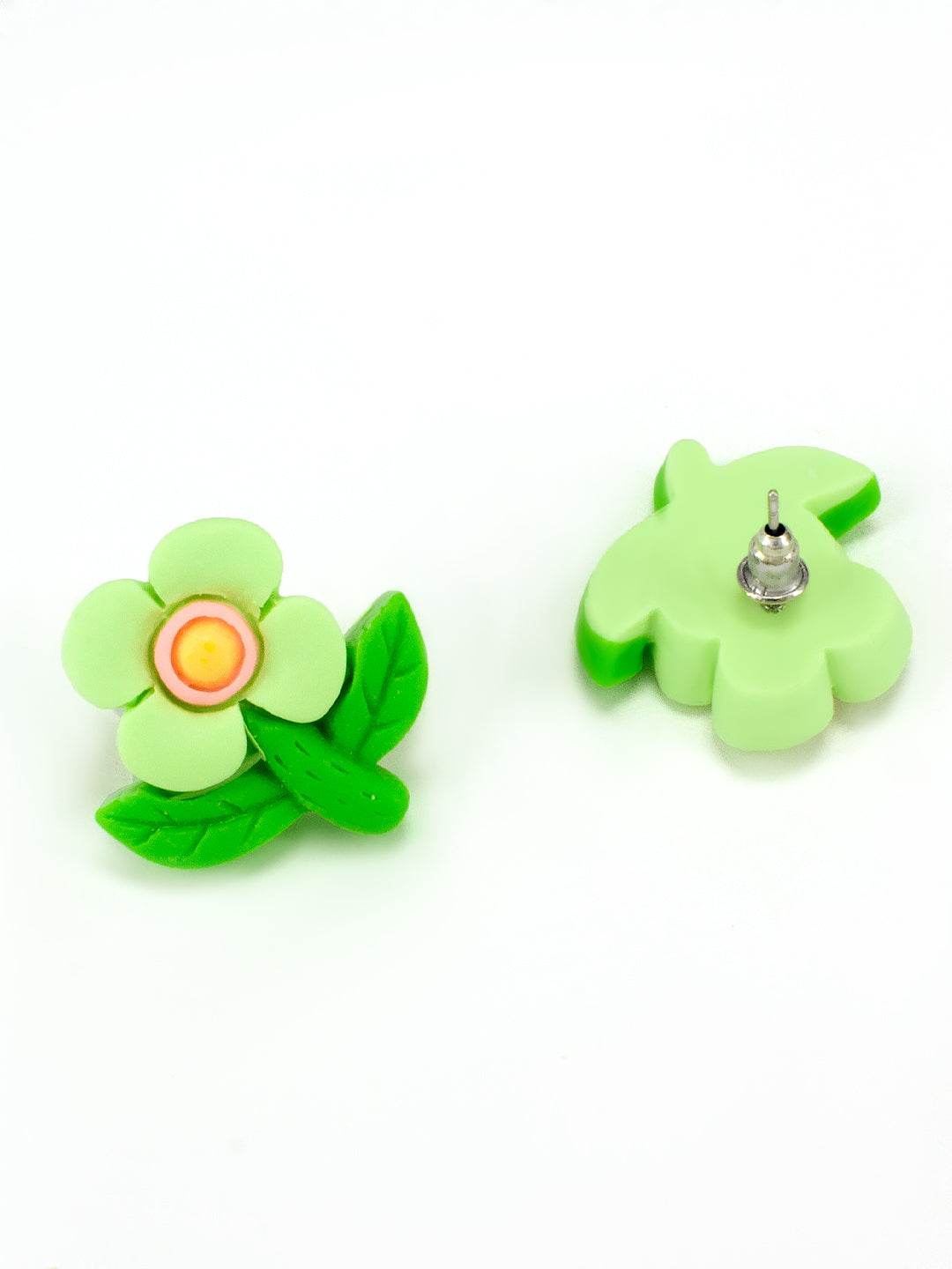 Green Metal Floral Studs Earrings