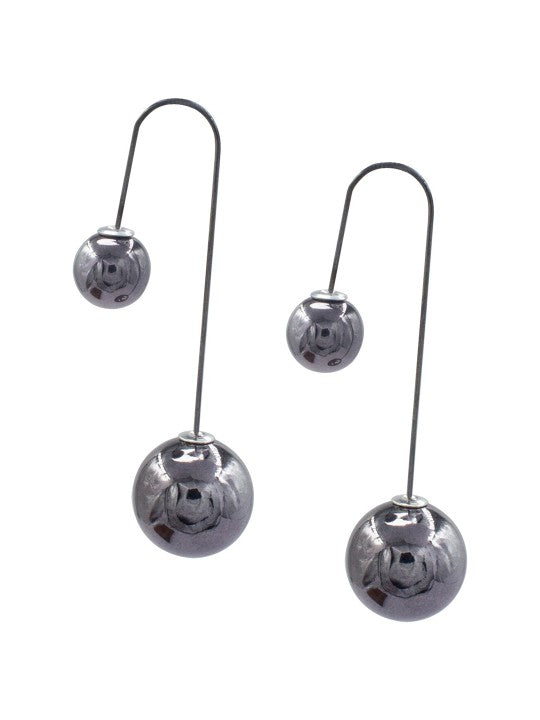Gun Plated Artificial Beaded Quirky Drop Earrings