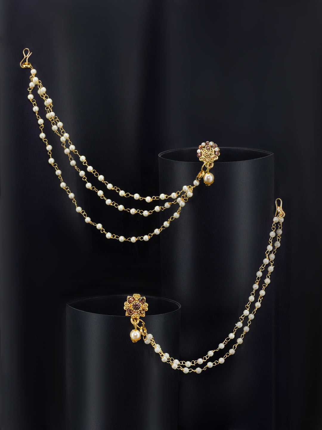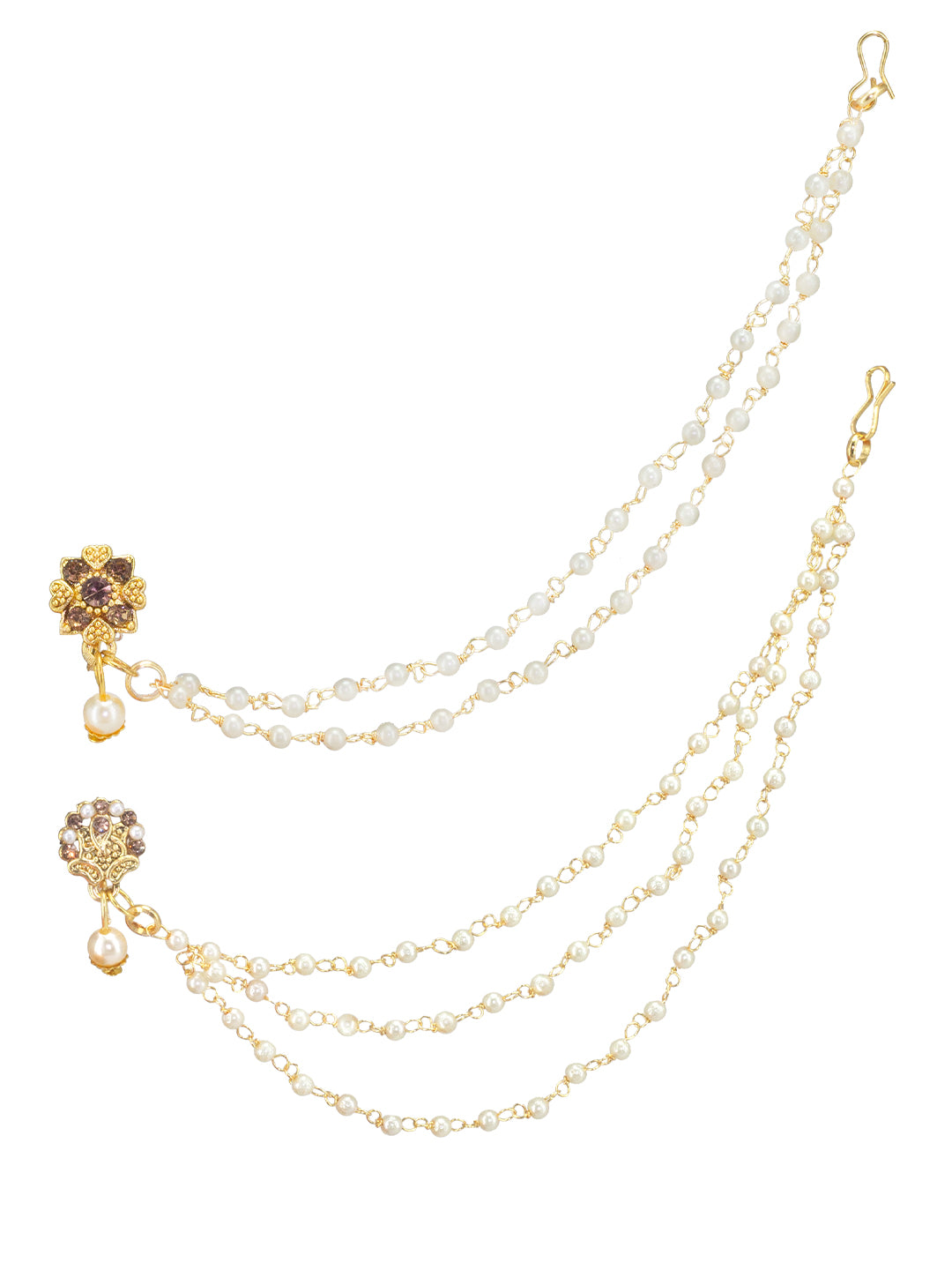 This combo consist of 2 gold plated chained nosepin, each has artificial stones & beads studded details and secured with hook closure.