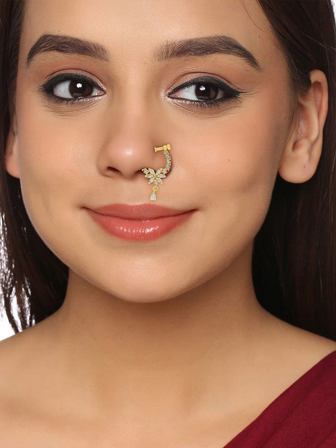 Gold Plated American Dimaond Drop Non-Piercing Nose Ring