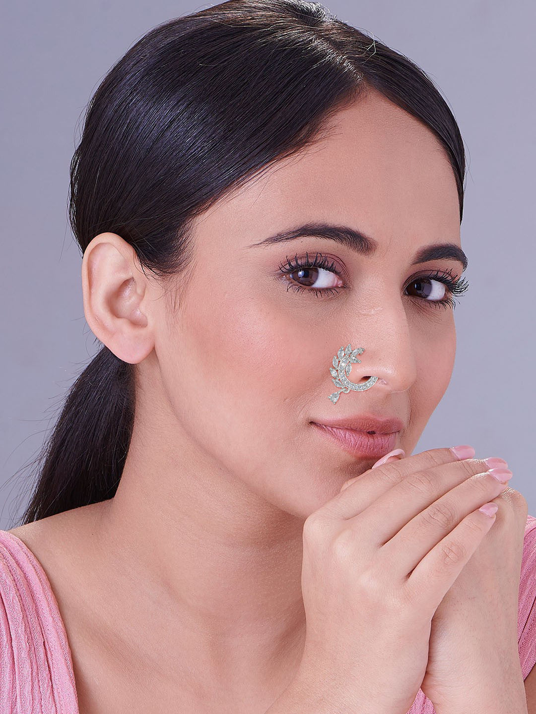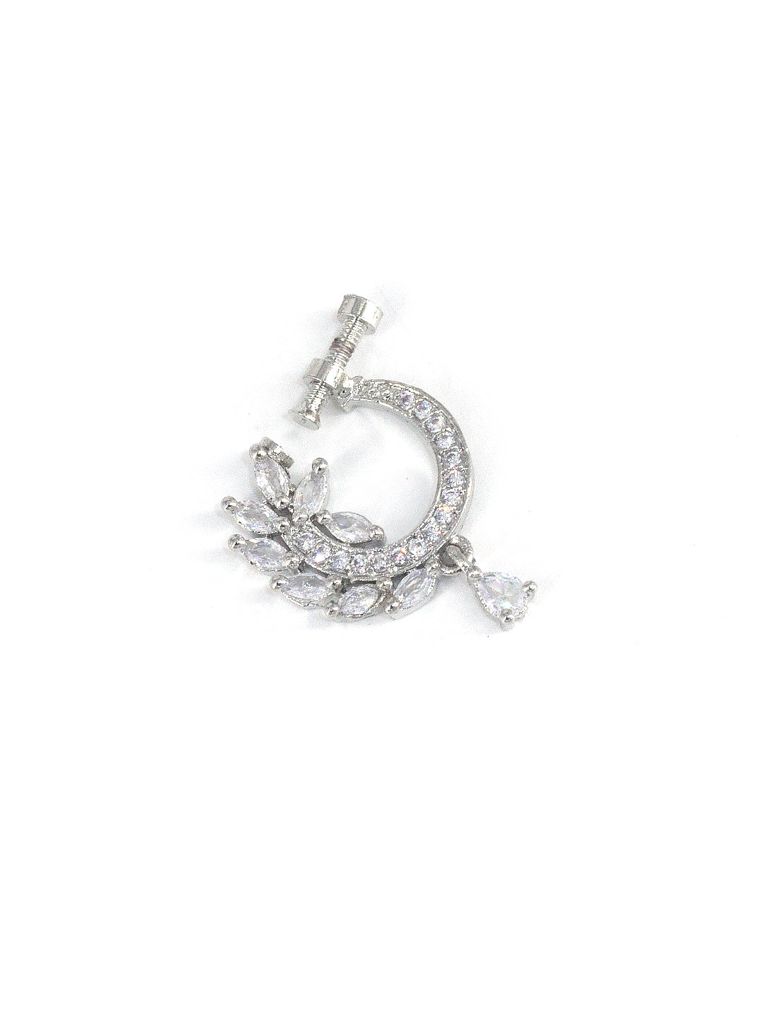 Rhodium Plated American Dimaond Floral Drop Nose Ring