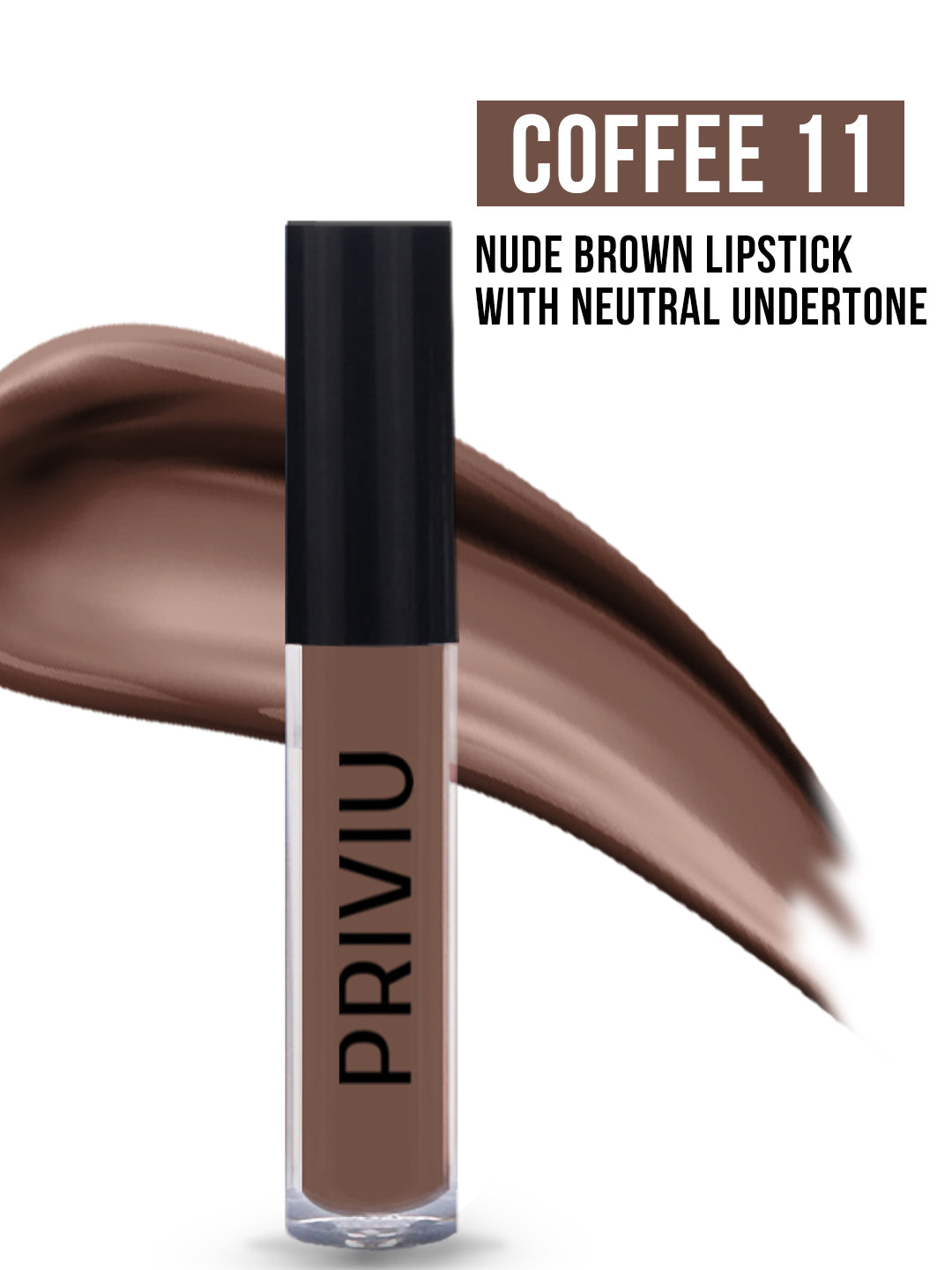 PRIVIU Hydra Matte Liquid Lipstick | Waterproof Lipstick | Smudge Proof and Long Lasting | Super Hydrating Formula | 4 ml, Coffee - 11, Nude Brown Lipstick with Neutral Undertone