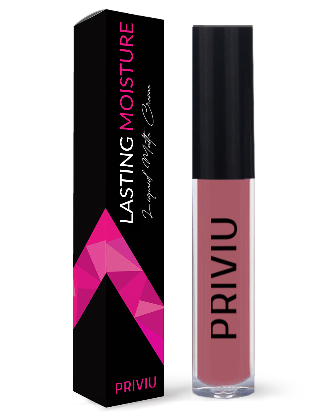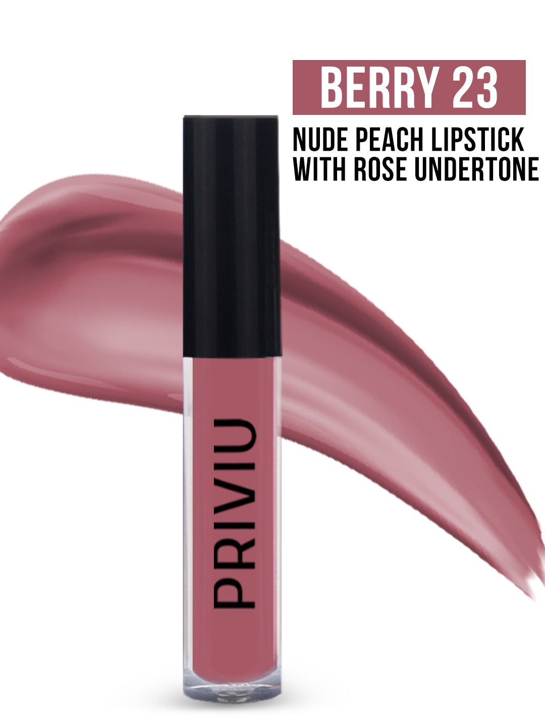 PRIVIU Hydra Matte Liquid Lipstick | Waterproof Lipstick | Smudge Proof and Long Lasting | Super Hydrating Formula | 4 ml, Berry - 23, Nude Peach Lipstick with Rose Undertone