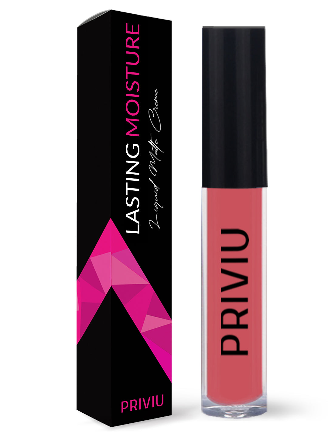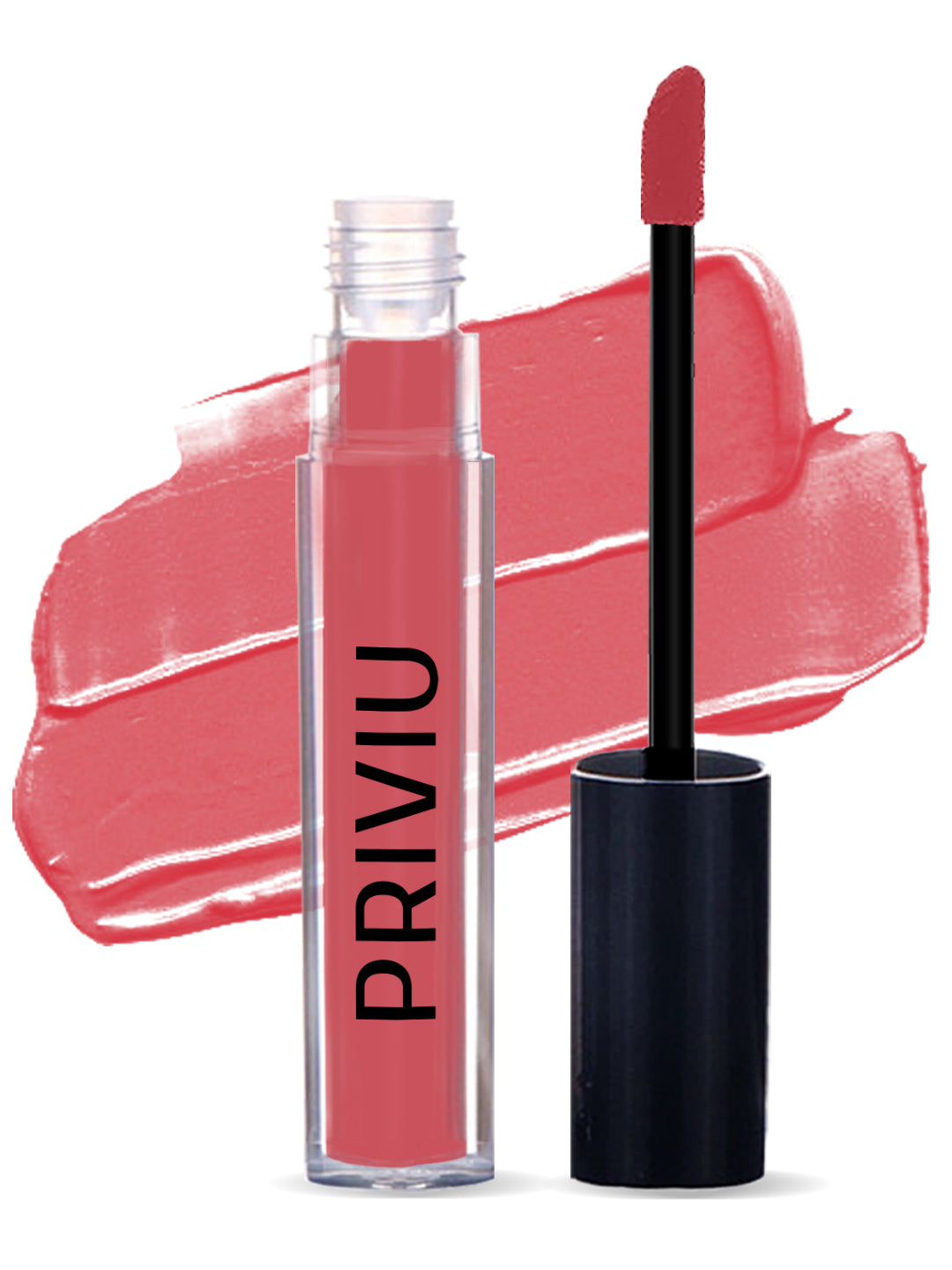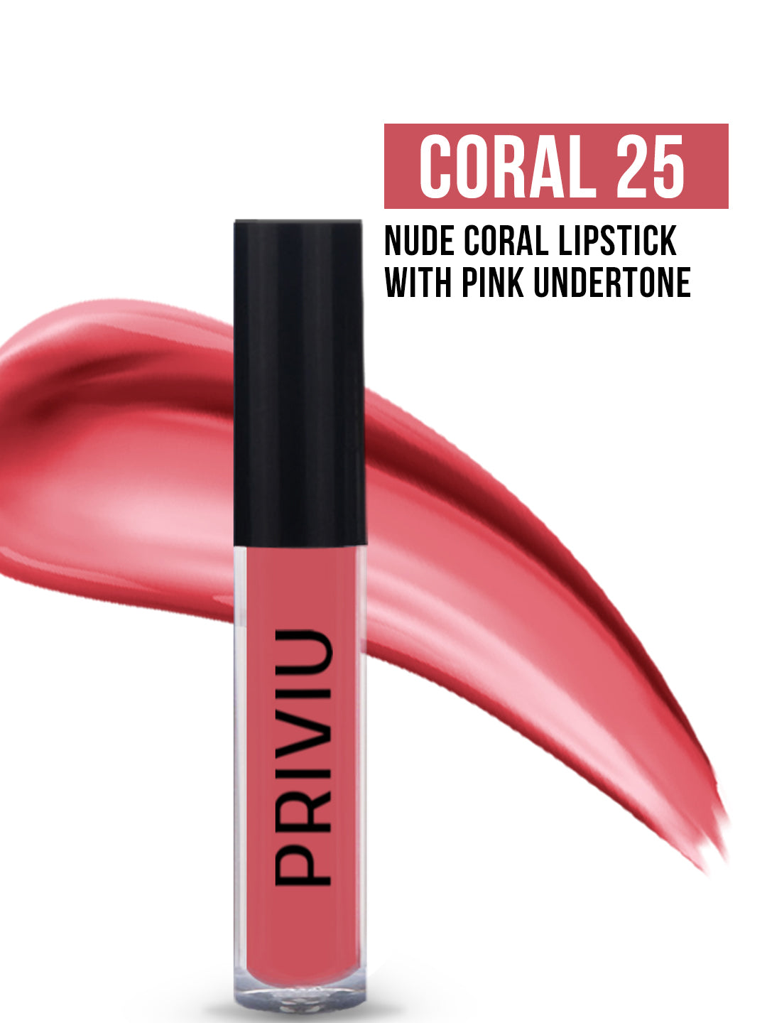 PRIVIU Hydra Matte Liquid Lipstick | Waterproof Lipstick | Smudge Proof and Long Lasting | Super Hydrating Formula | 4 ml, Coral - 25, Nude Coral Lipstick with Pink Undertone