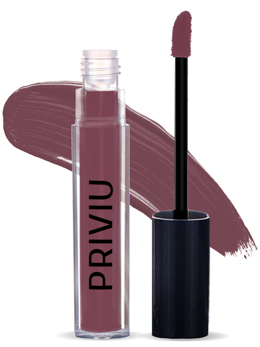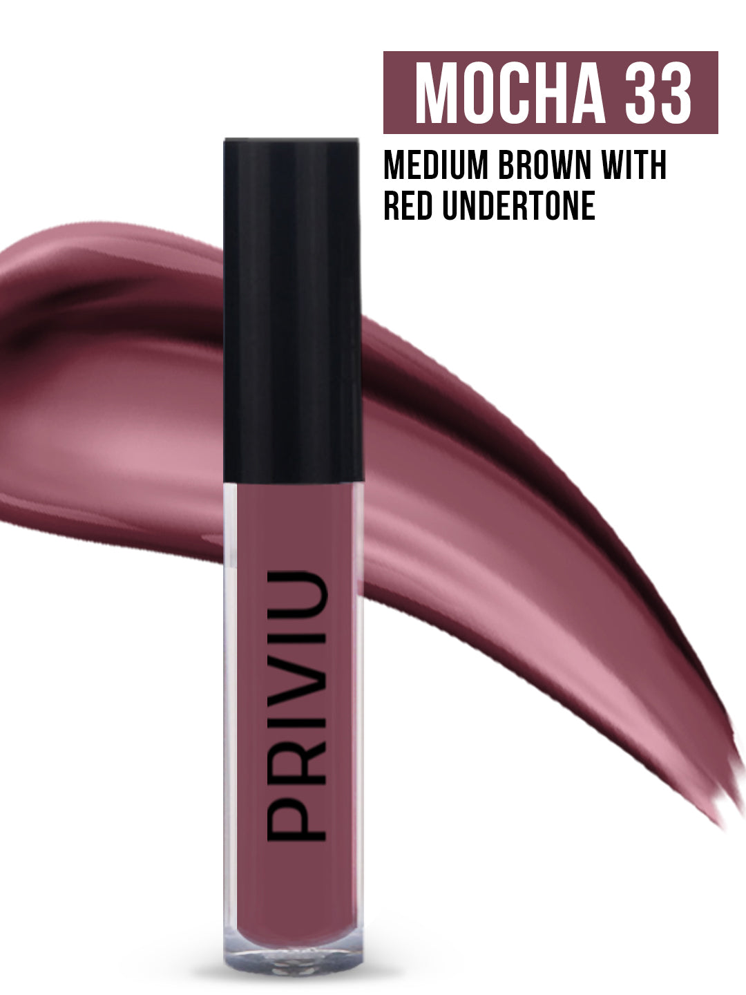 PRIVIU Hydra Matte Liquid Lipstick | Waterproof Lipstick | Smudge Proof and Long Lasting | Super Hydrating Formula | 4 ml, Mocha - 33, Medium Brown with Red Undertone