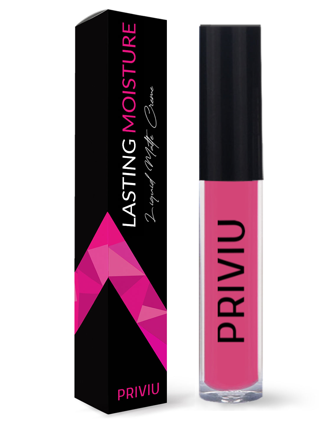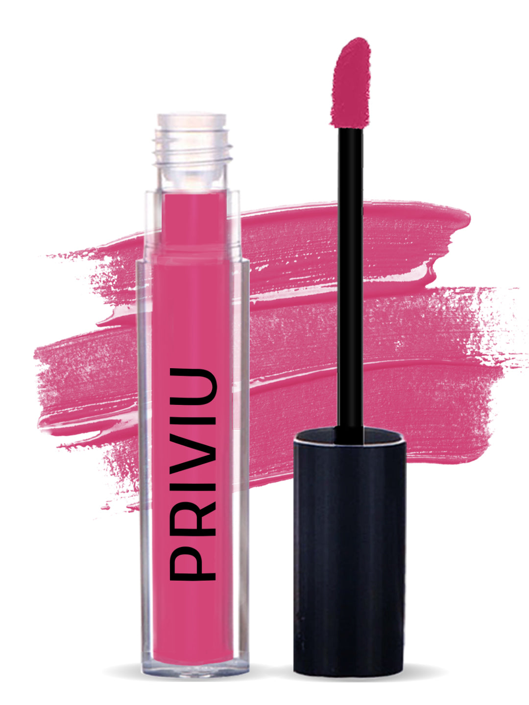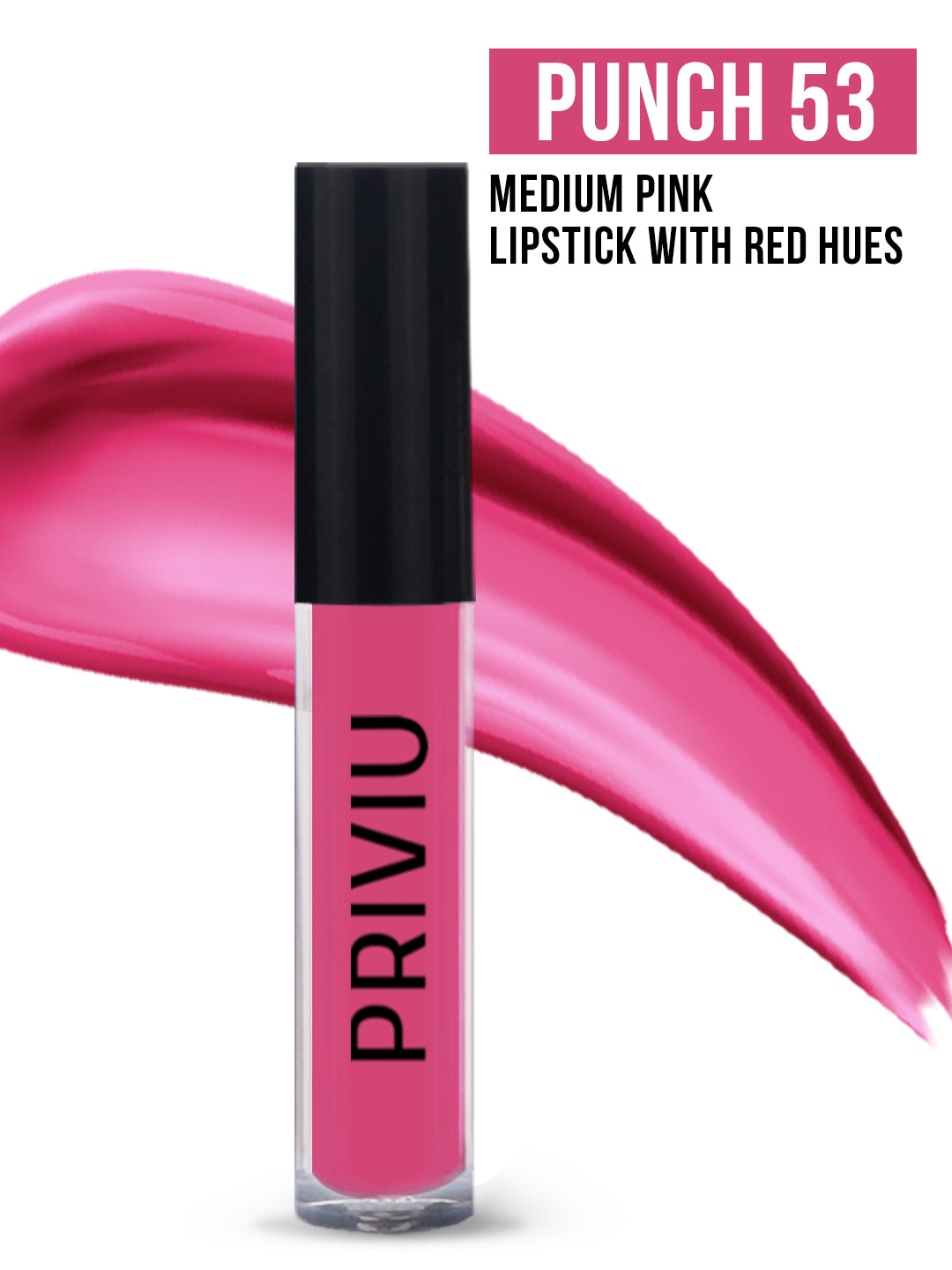PRIVIU Hydra Matte Liquid Lipstick | Waterproof Lipstick | Smudge Proof and Long Lasting | Super Hydrating Formula | 4 ml, Punch - 53, Medium Pink Lipstick with Red Hues