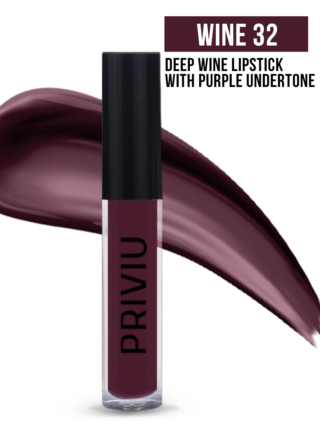 PRIVIU Hydra Matte Liquid Lipstick | Waterproof Lipstick | Smudge Proof and Long Lasting | Super Hydrating Formula | 4 ml, Wine - 32