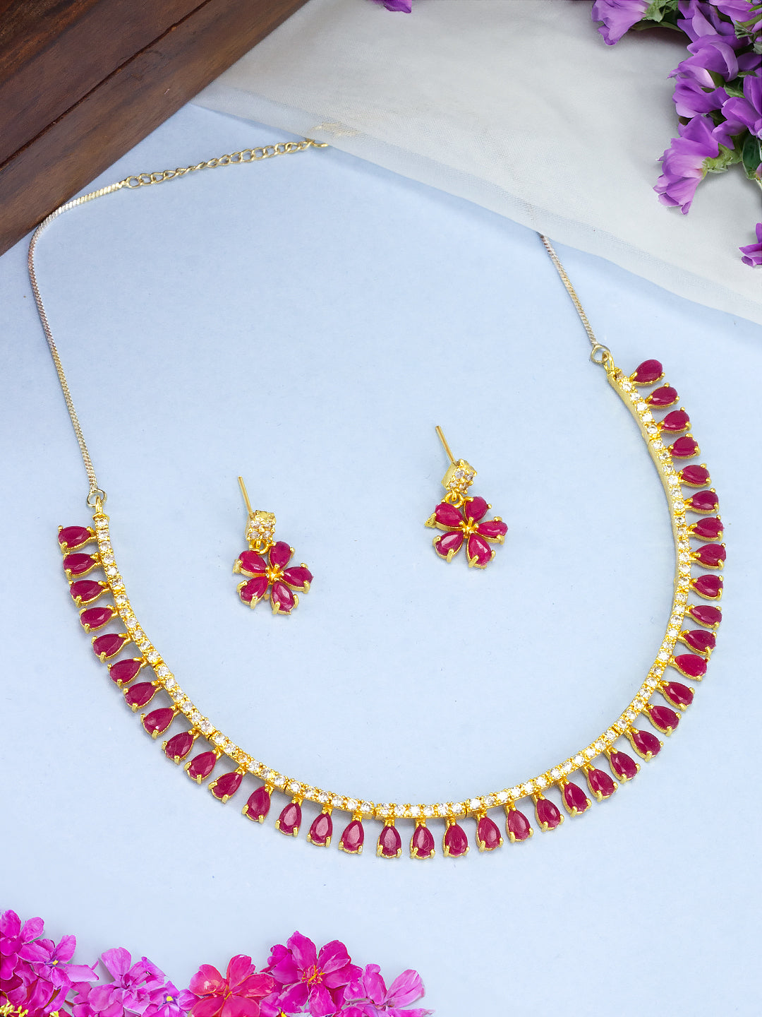 Gold Plated Teardrop American Diamond Jewellery Set