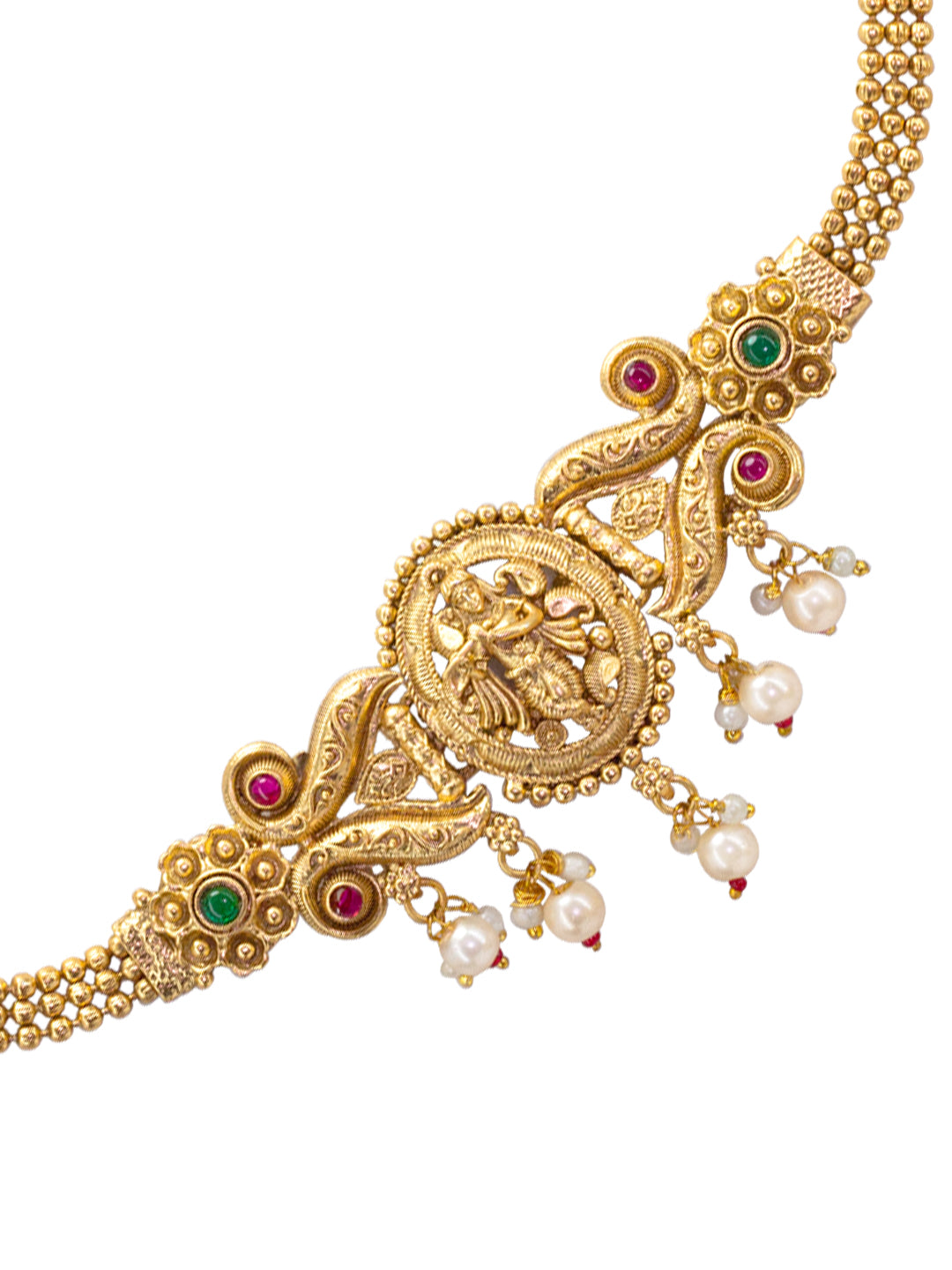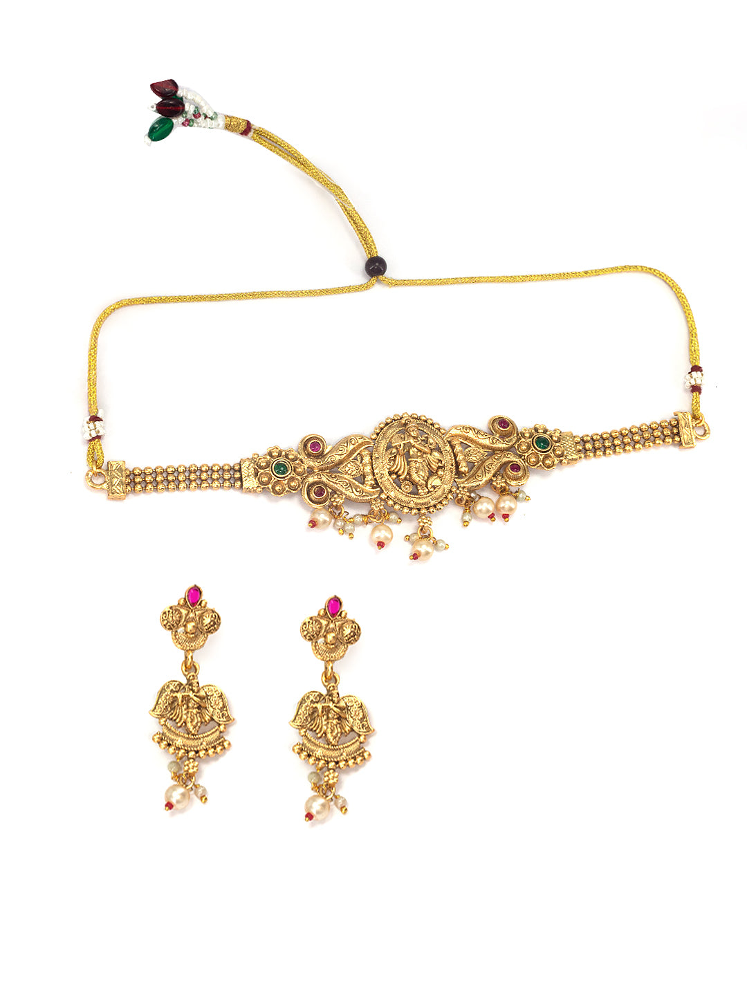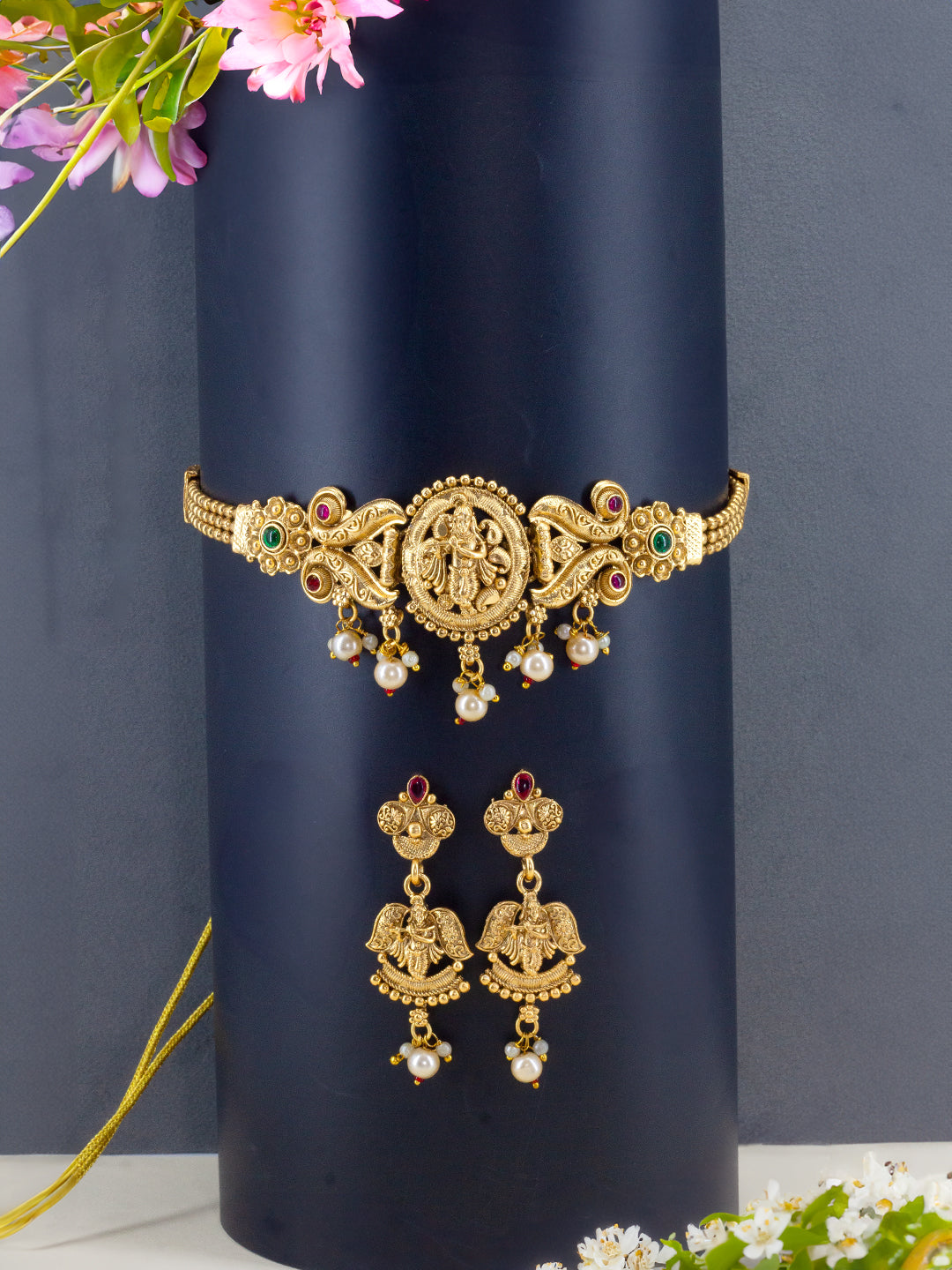 Gold Plated Shree Krishna Kundan Choker Temple Jewellery Set