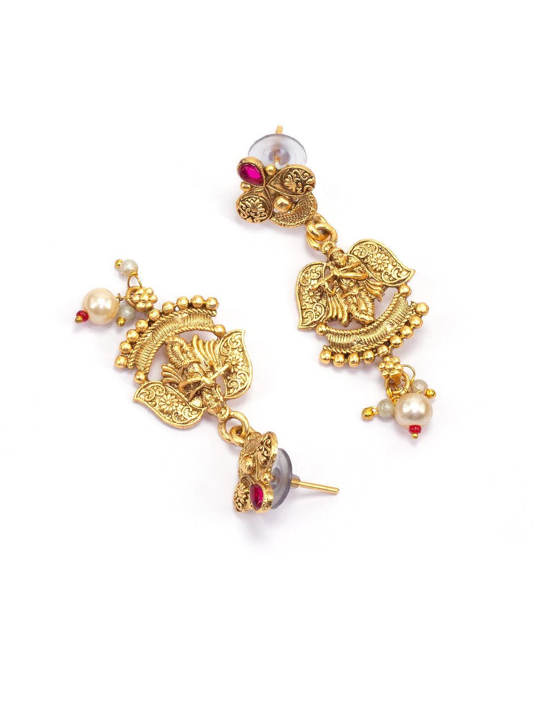 Silver Oxidised Radha Krishna Jhumka Earrings