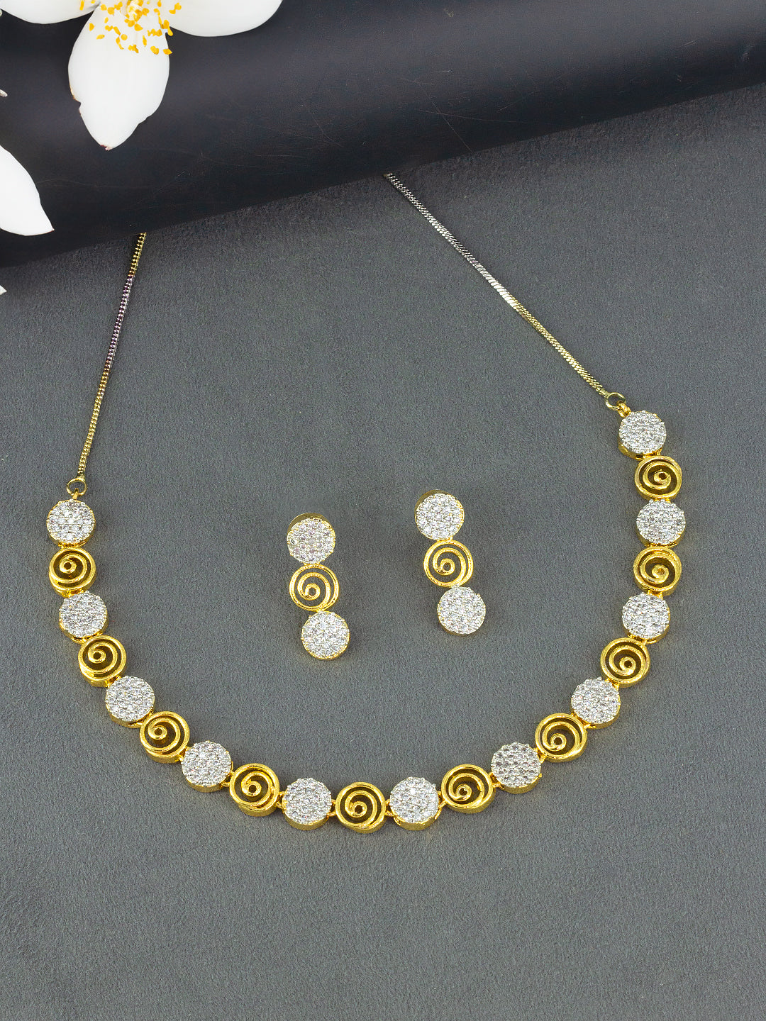 Gold Plated American Diamond Minimal Design Jewellery Set