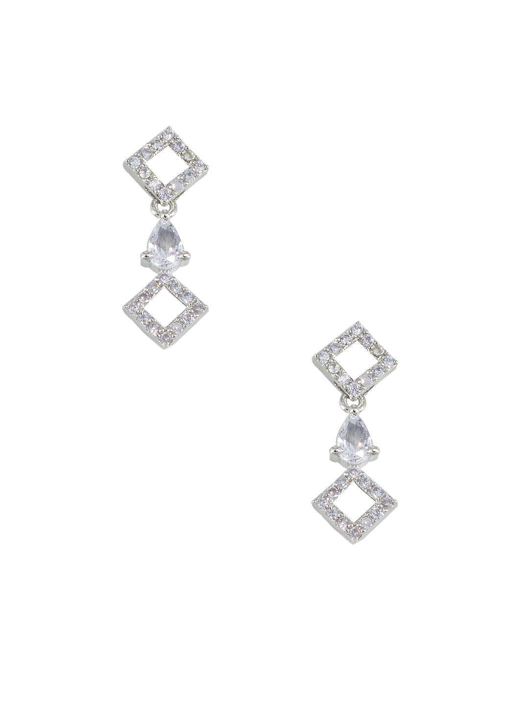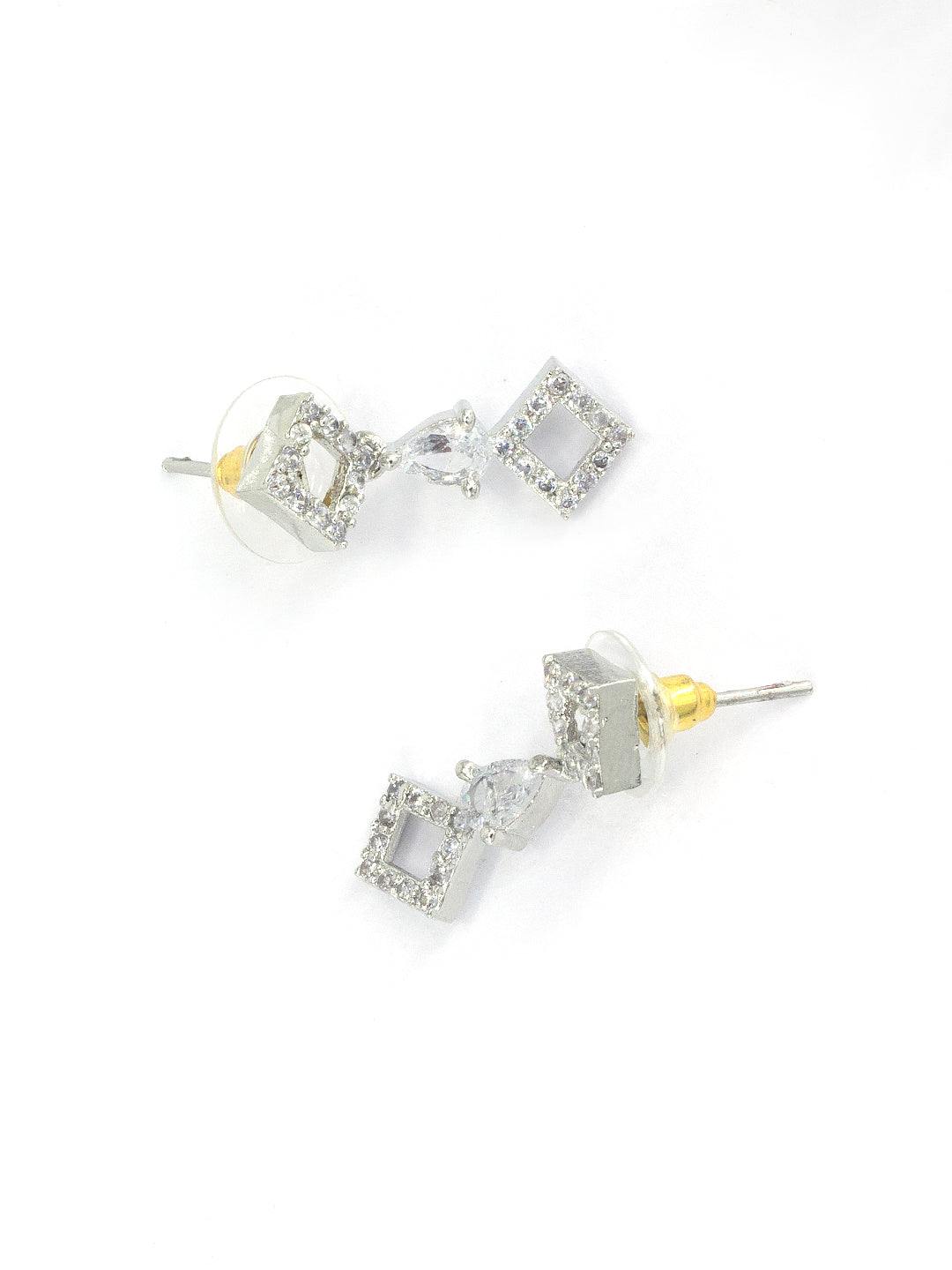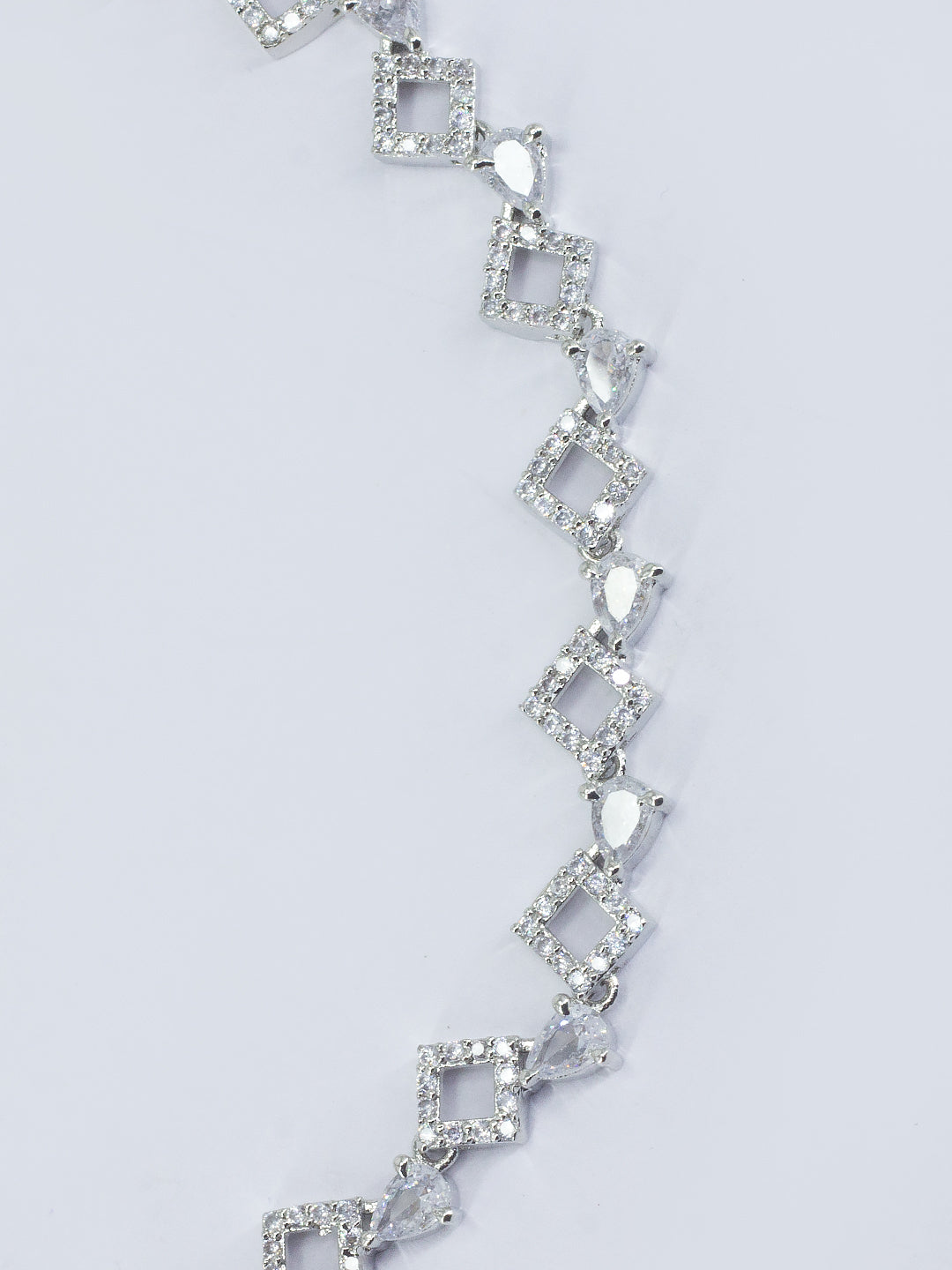 This jewellery set consist of a rhodium plated necklace and pair of earrings. Necklace has AD studded details and secured with hook closure. Earrings are secured with post & back closure.