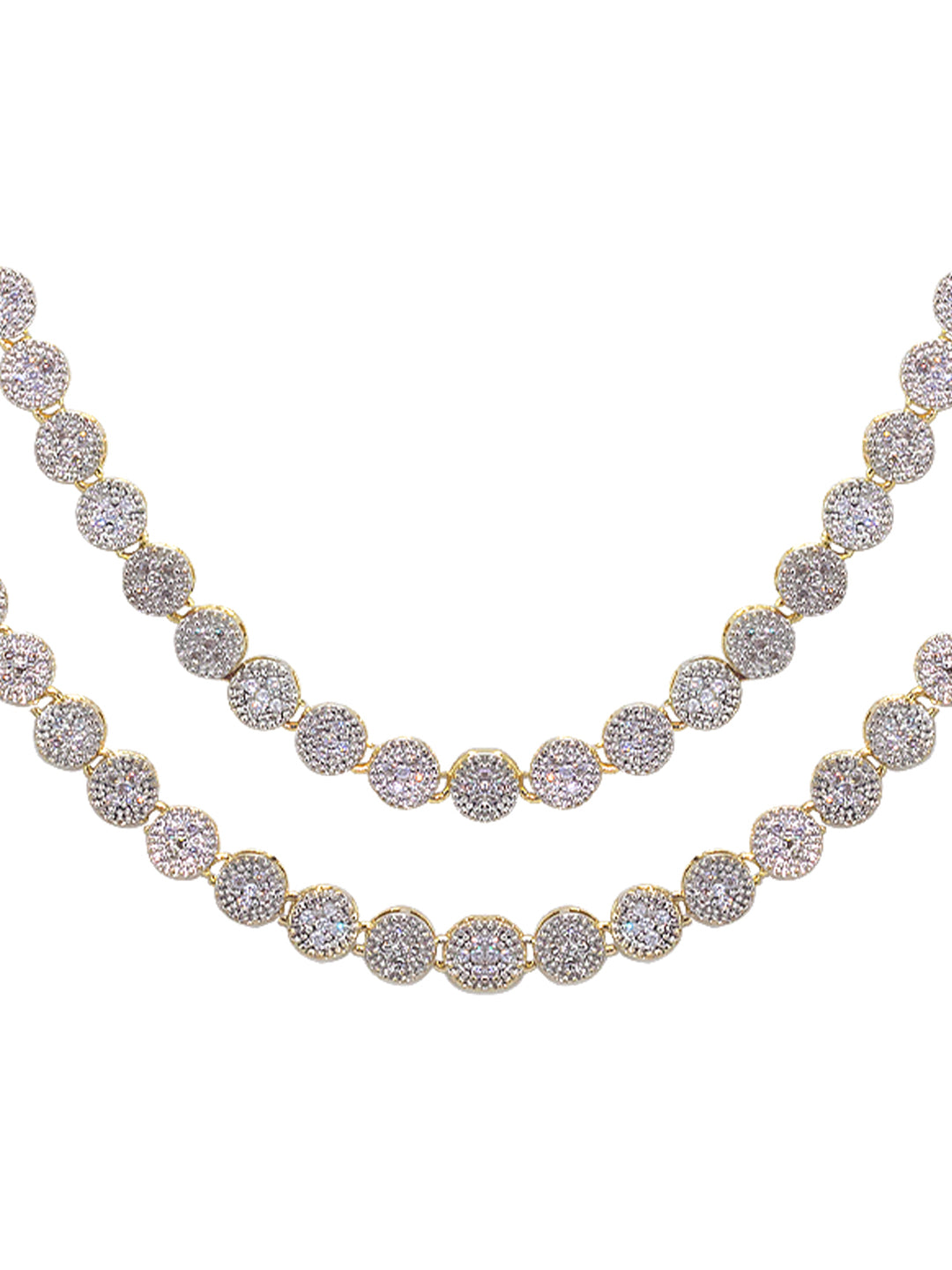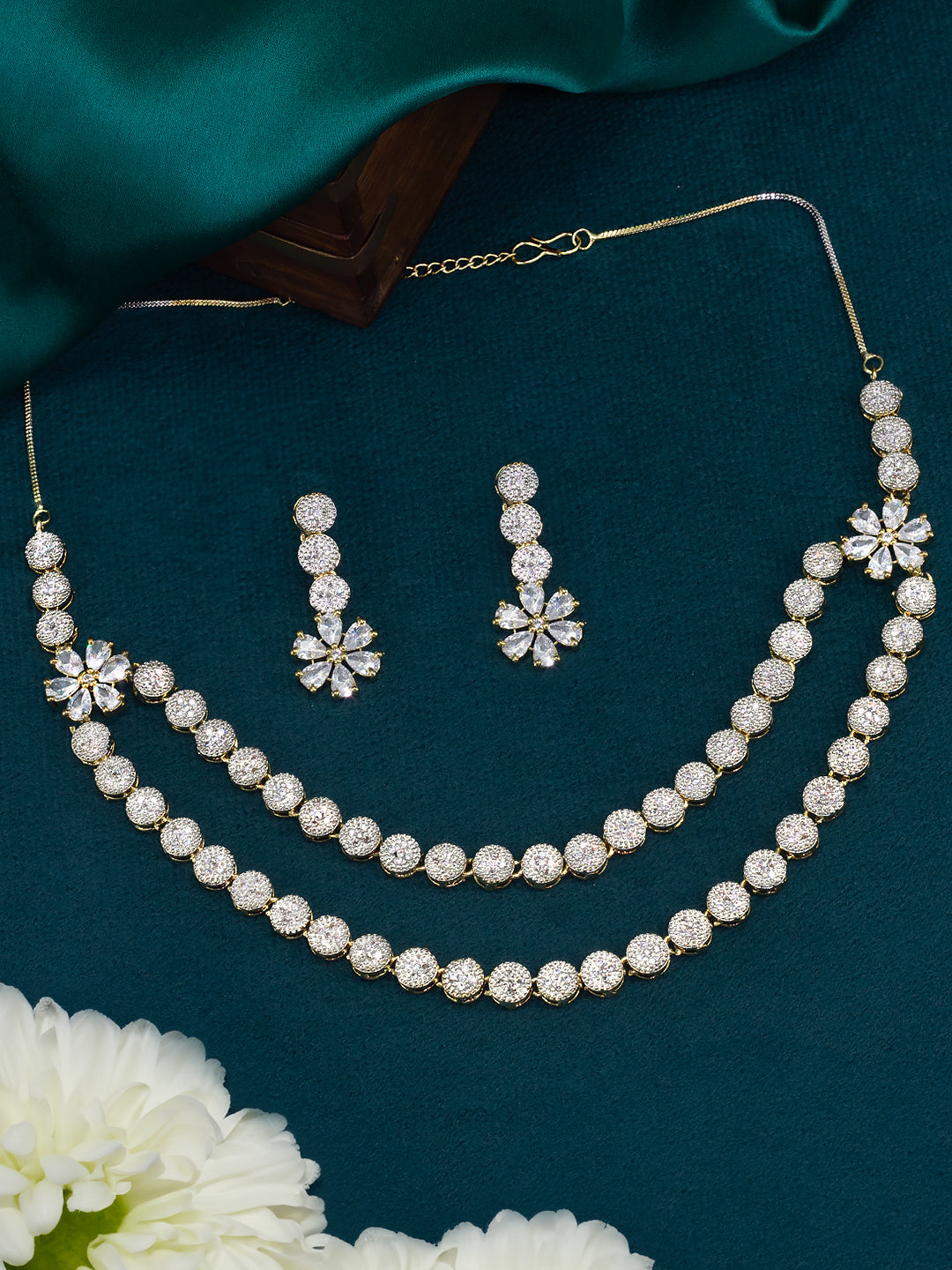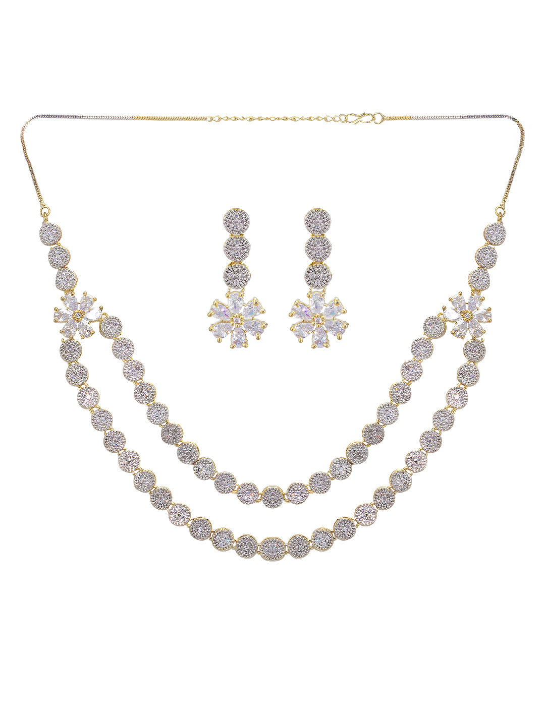 Gold Plated Floral Double Layred American Diamond Studded Jewellery Set