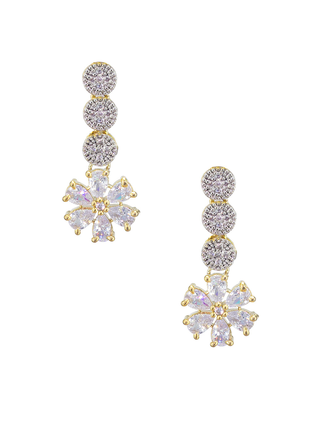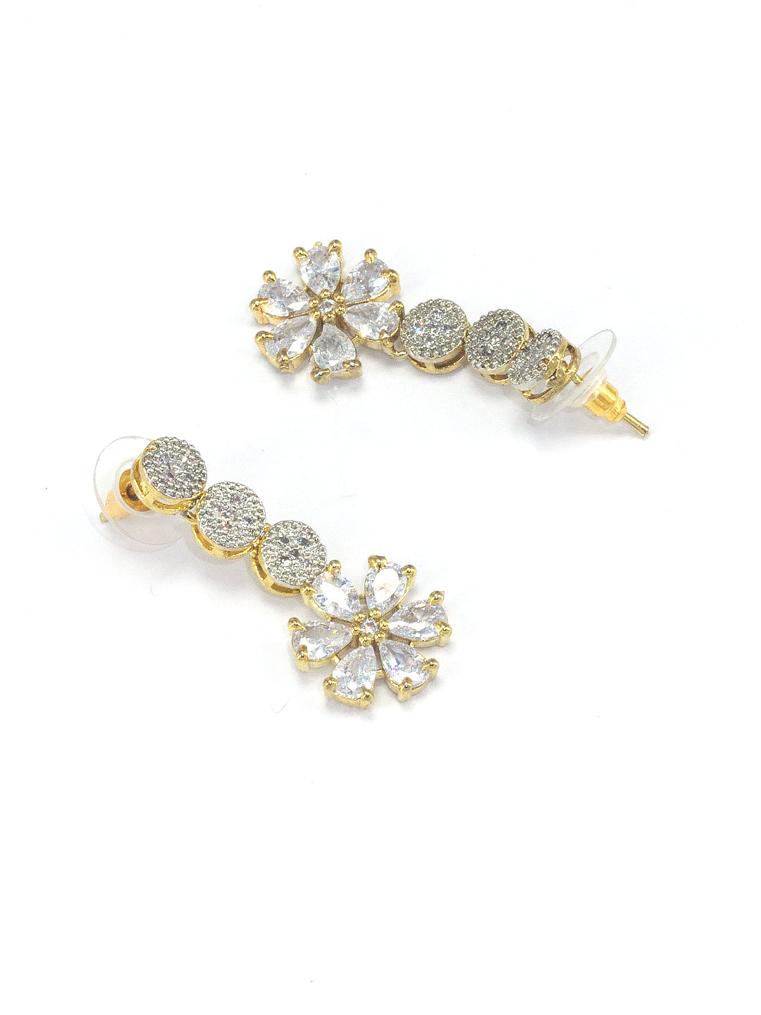This jewellery set consist of a gold plated necklace and pair of earrings. Necklace has AD studded and floral details and secured with s-hook closure. Earrings has floral details and are secured with post & back closure.