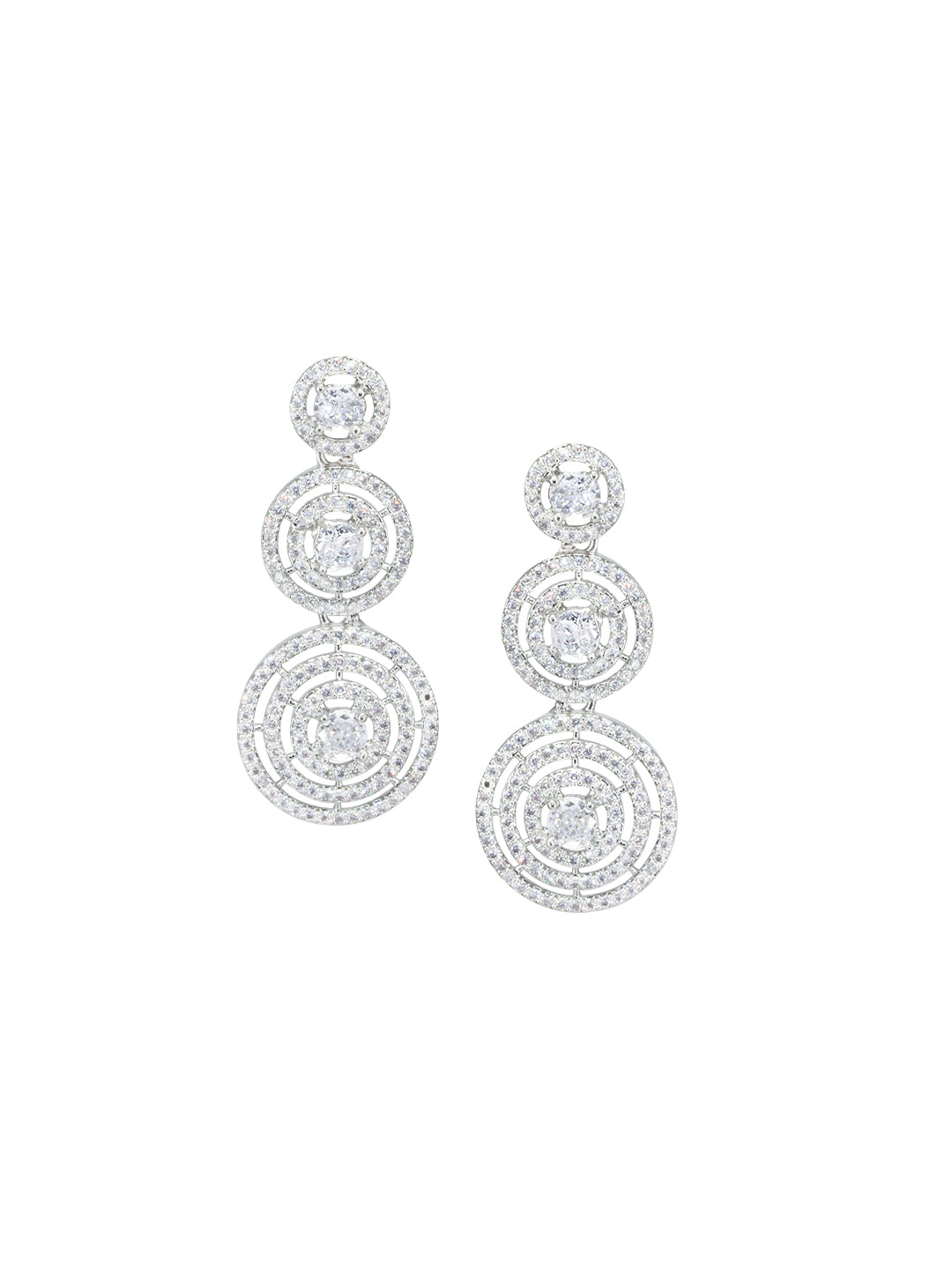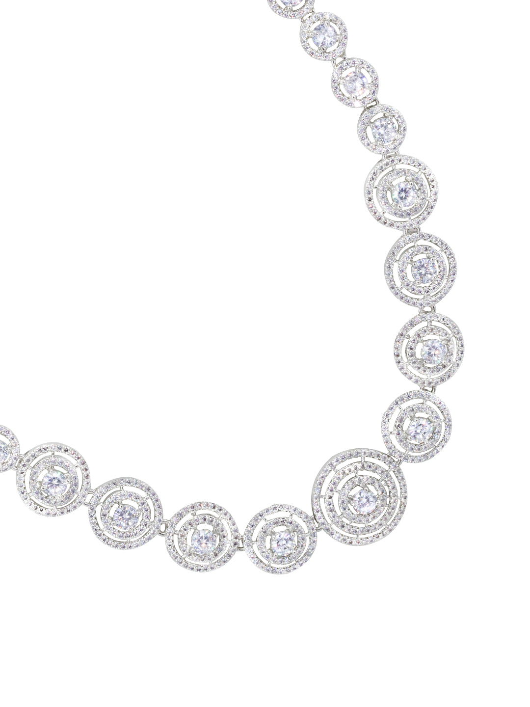This jewellery set consist of a rhodium plated necklace and pair of earrings, has AD studded details. Necklace is secured with hook closure. Earrings are secured with post & back closure.
