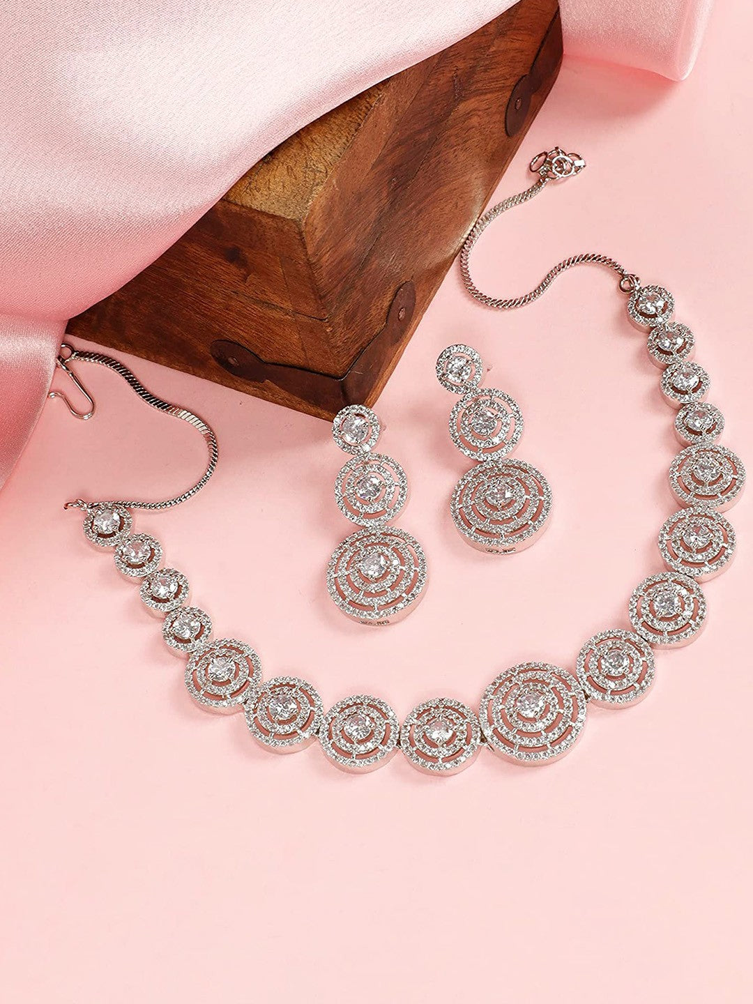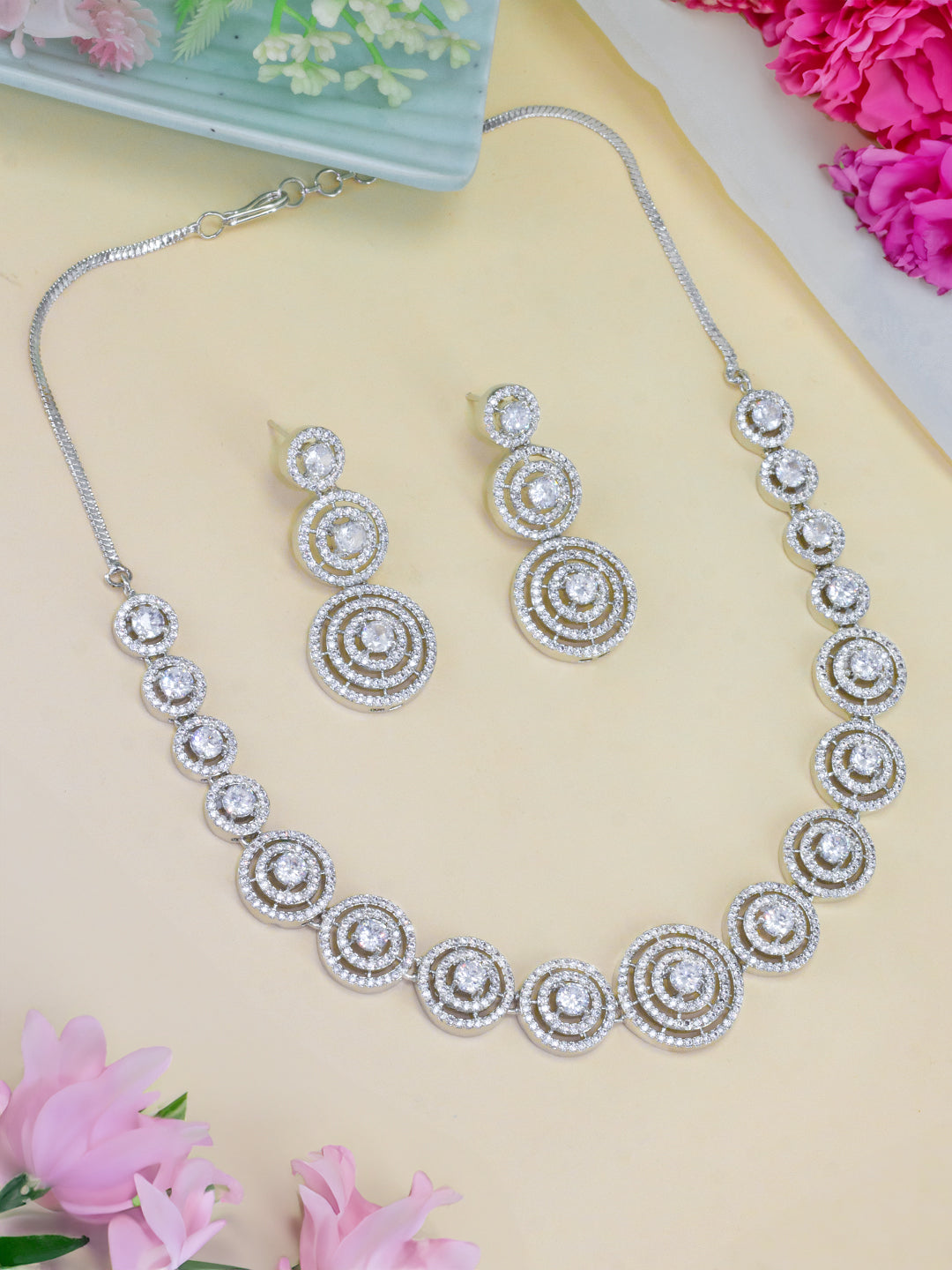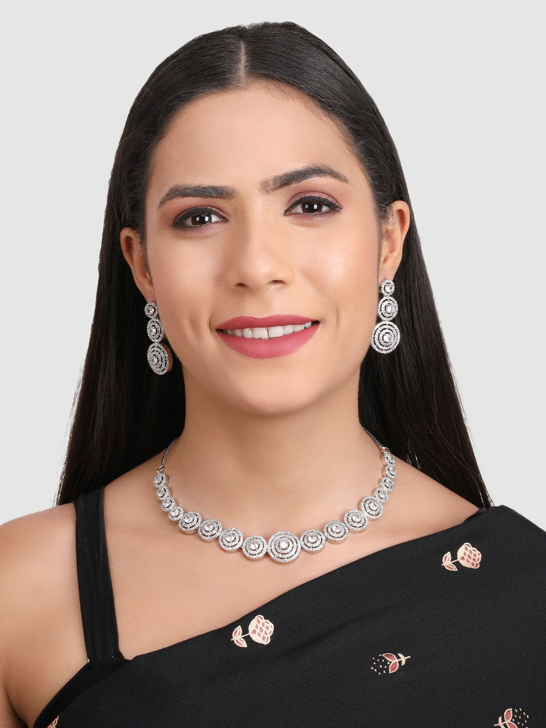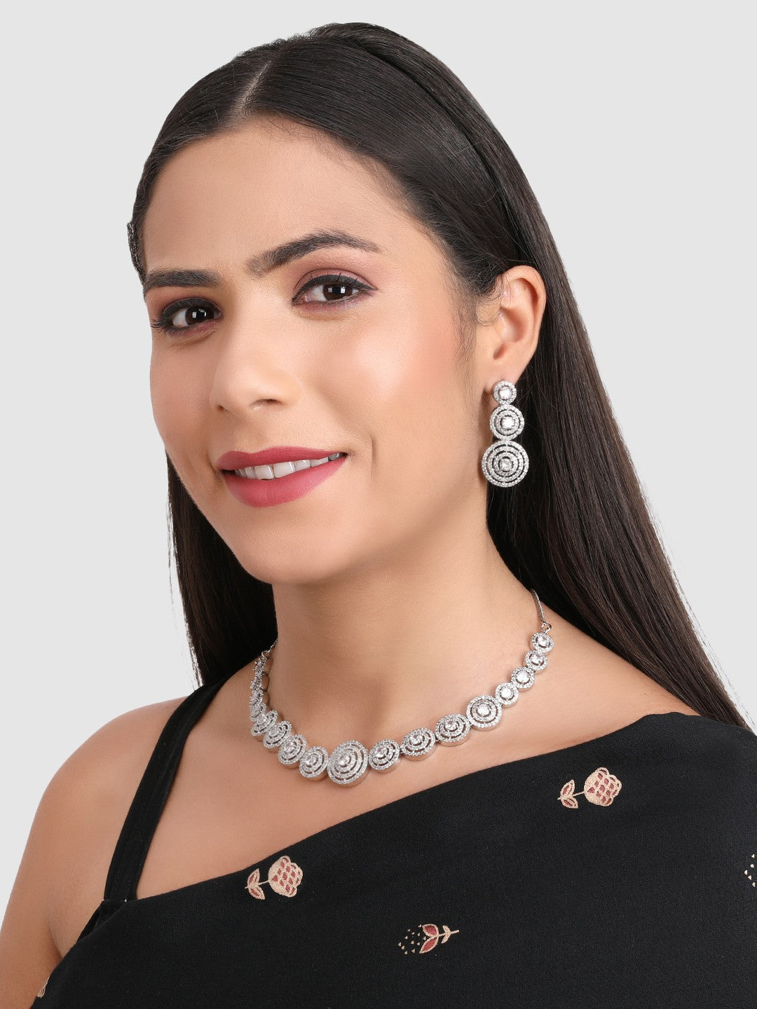 Rhodium Plated American Diamond Trendy Jewellery Set