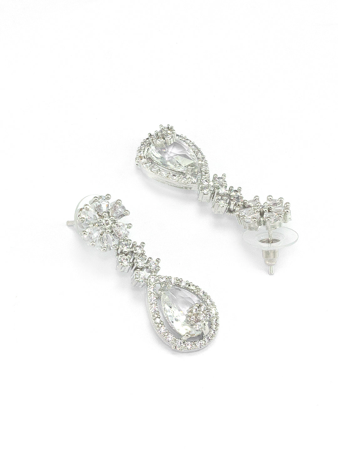 Rhodium Plated Teardrop American Diamond Studded Trendy Pendant Set