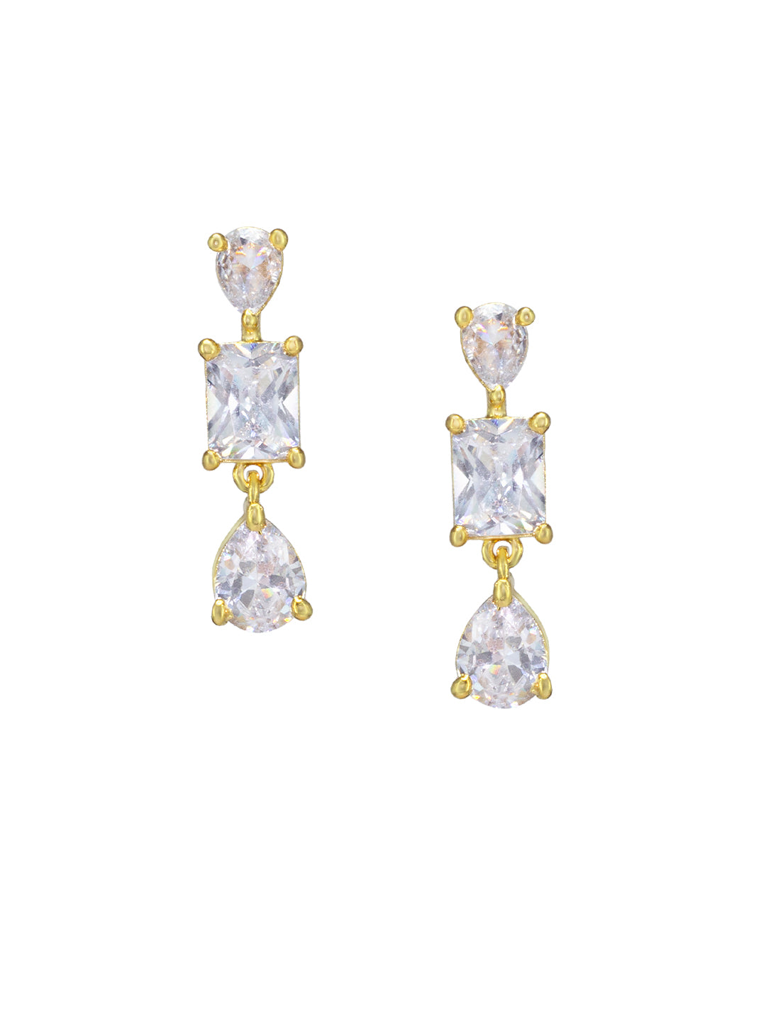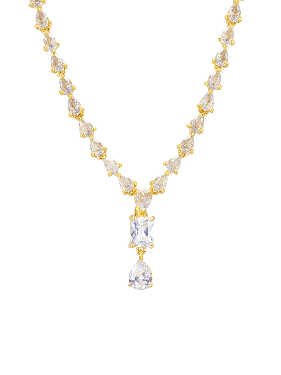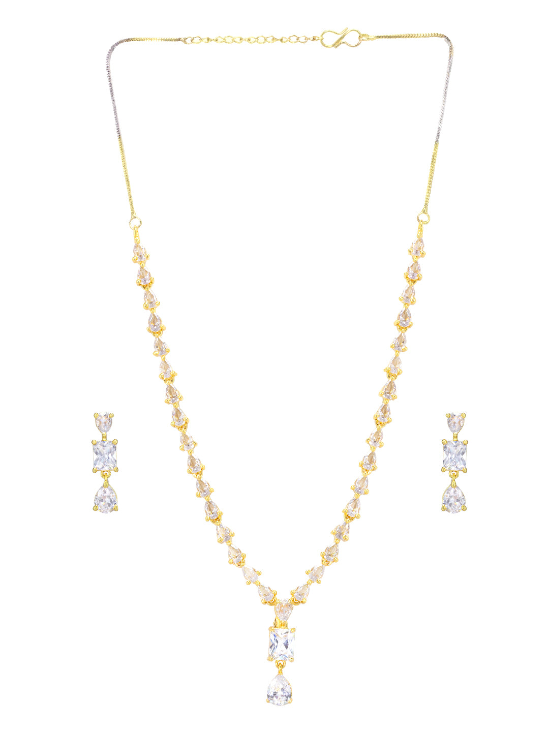Gold Plated Teardrop Shaped American Diamond Studded Jewellery Set