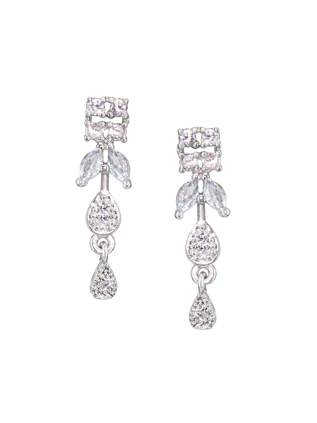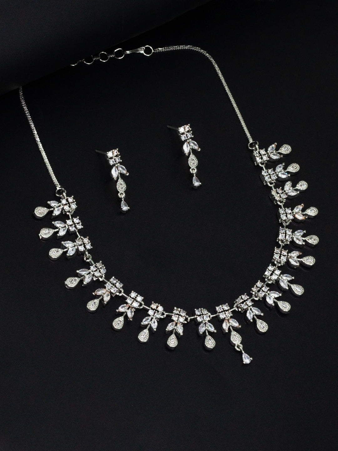 Rhodium Plated Teardrop American Diamond Studded Jewellery Set