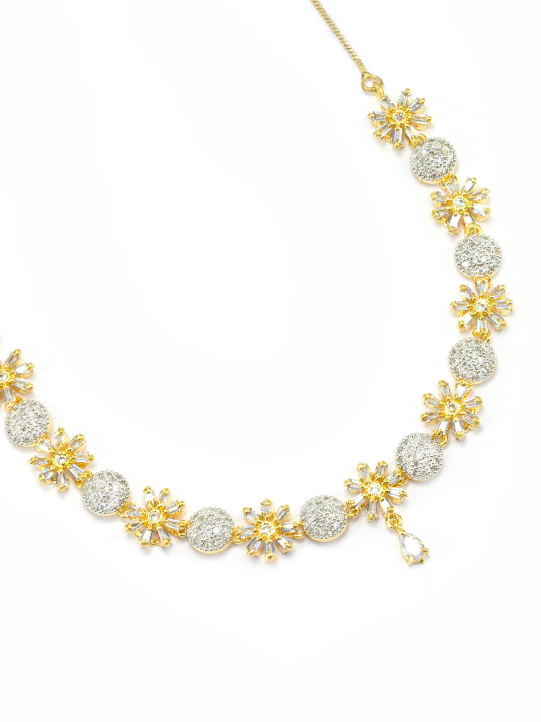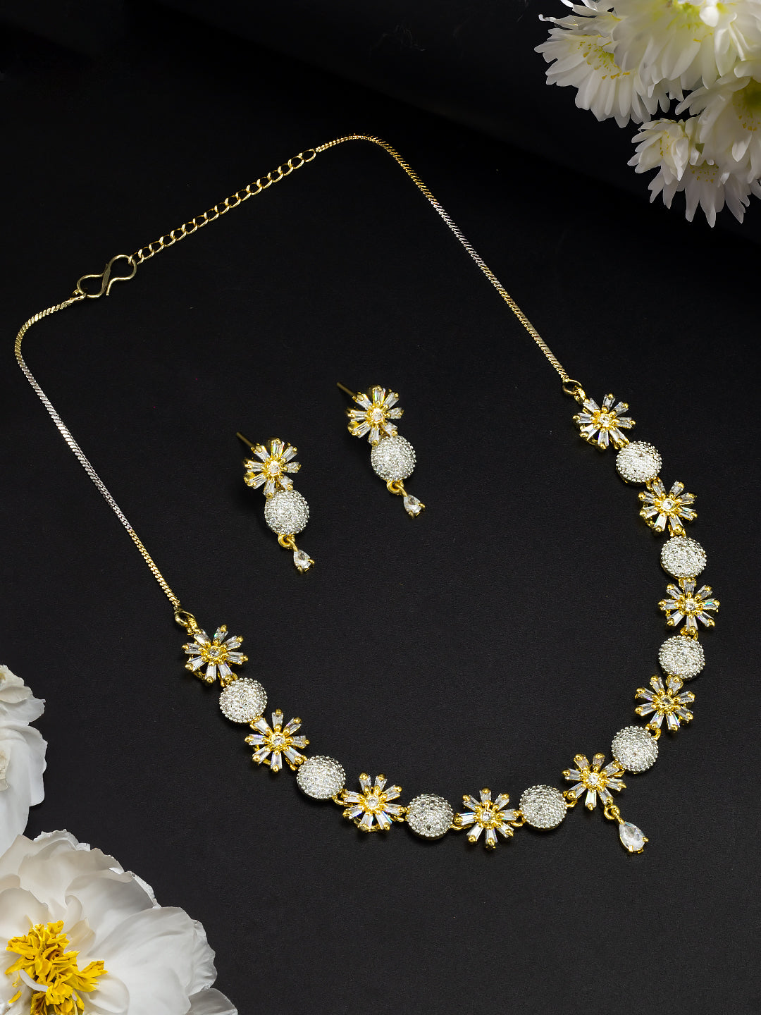 Gold Plated Floral American Diamond Studded Jewellery Set