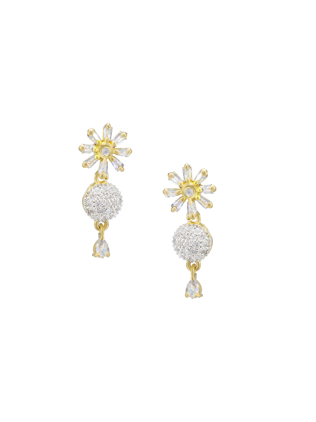 This jewellery set consist of a necklace and a pair of earrings. Necklace is gold plated, has AD studded details and secured with s-hook closure. Earrings are secured with post & back closure.