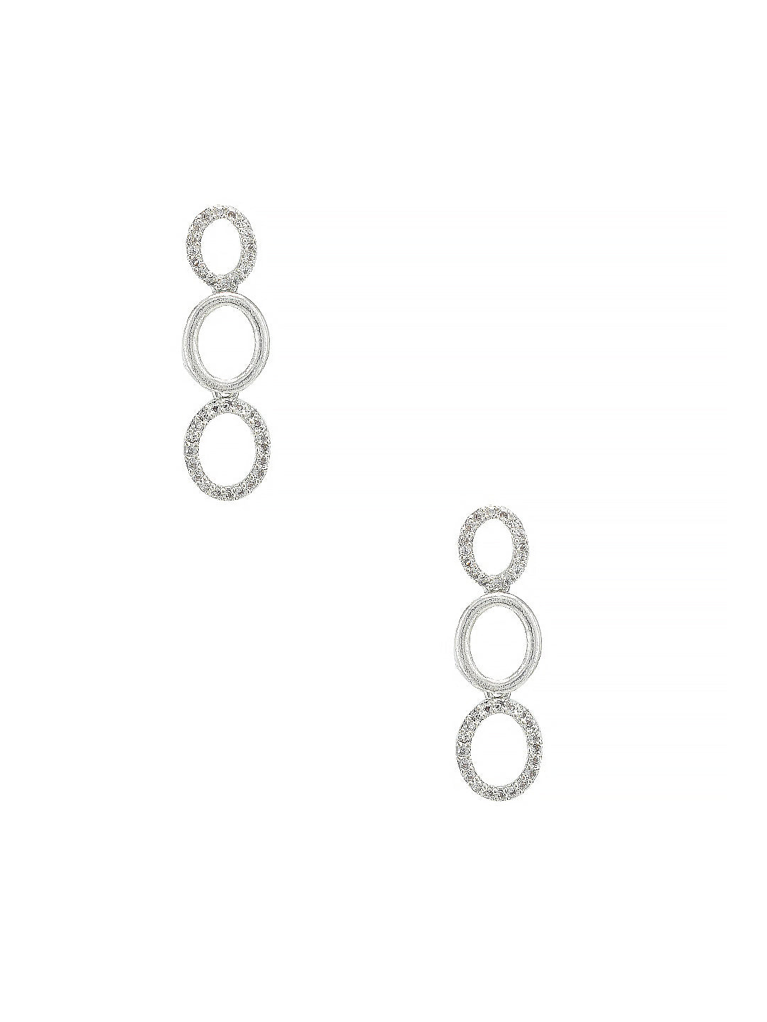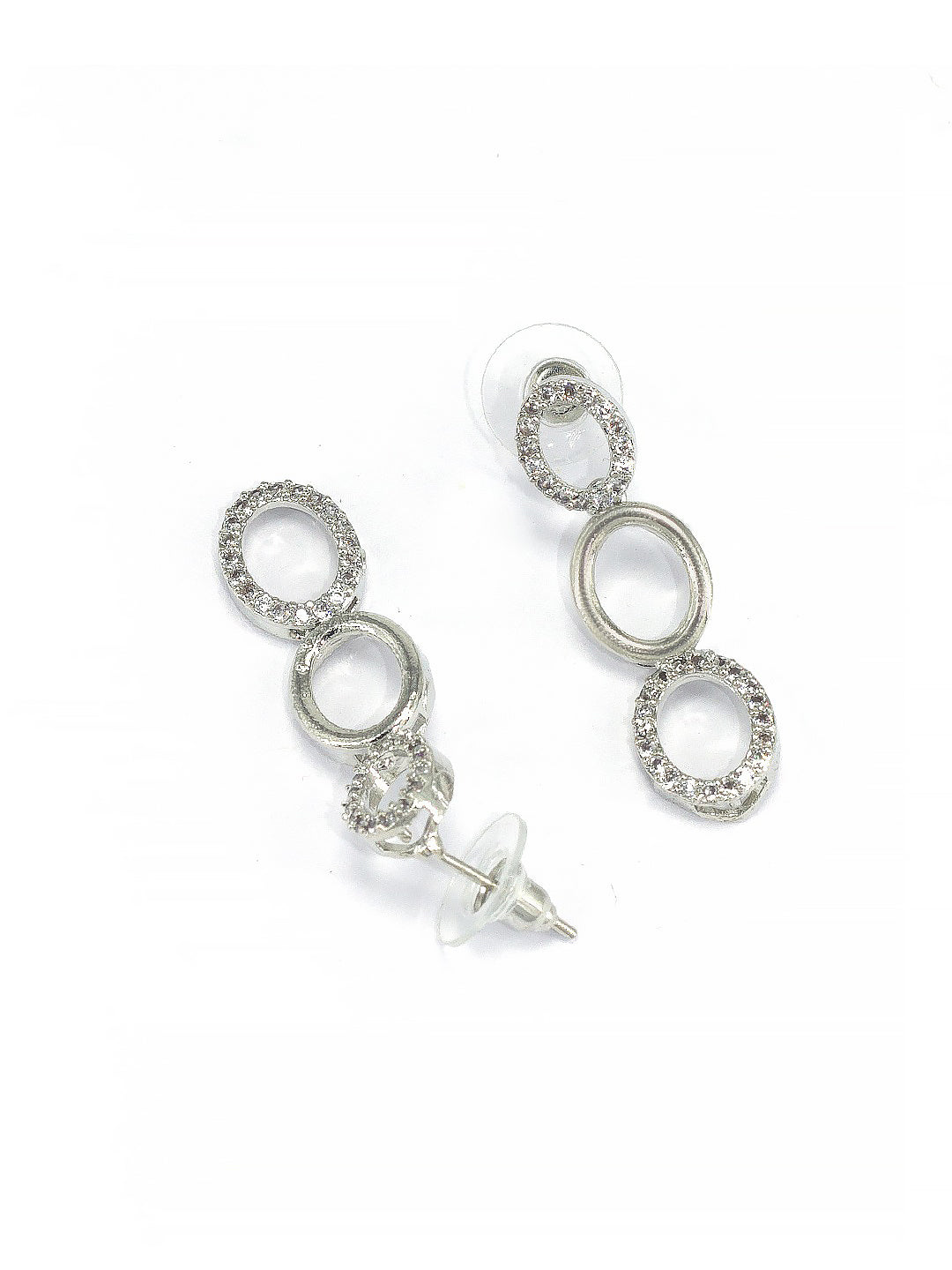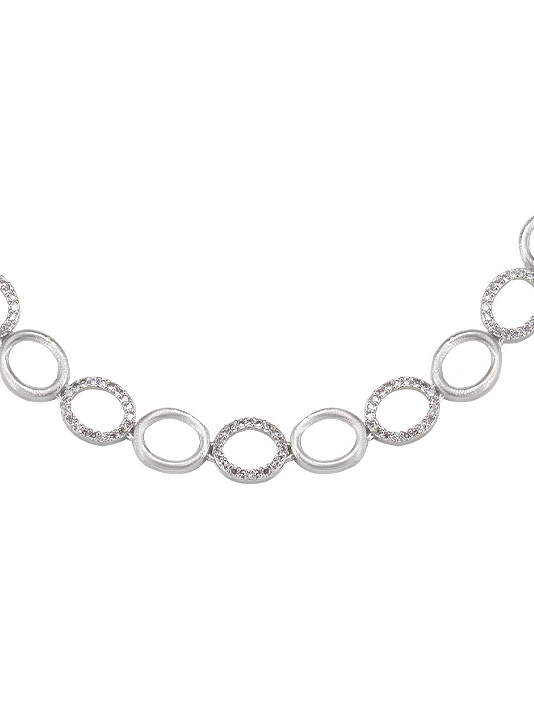 This jewellery set consist of a rhodium plated necklace and a pair of earrings, has AD studded details. Necklace is oval shaped and secured with hook closure and earrings are secured with post and back closure.